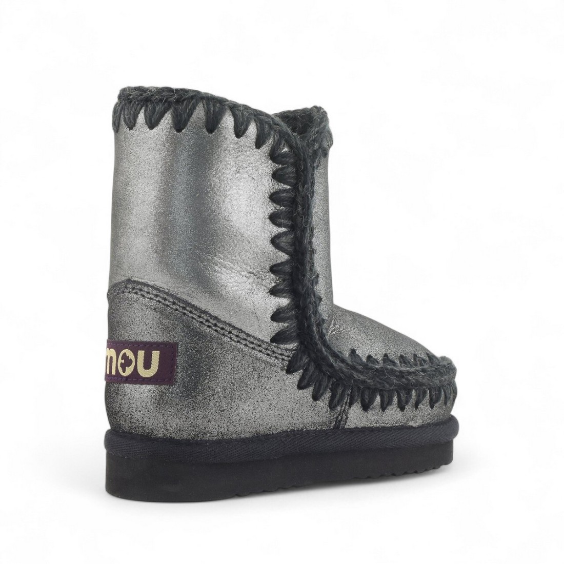 Découvrez la bottine Eskimo Kid de Mou en cuir noir micro-pailleté, un modèle exclusif réalisé avec des coutures en crochet et une doublure douce en peau de mouton double face. Le logo cousu à l'arrière et la semelle en caoutchouc garantissent un confort et un style authentique, parfaits pour compléter chaque look d'hiver avec élégance et singularité.Notre service client est disponible du lundi au samedi de 10h00 à 19h30
