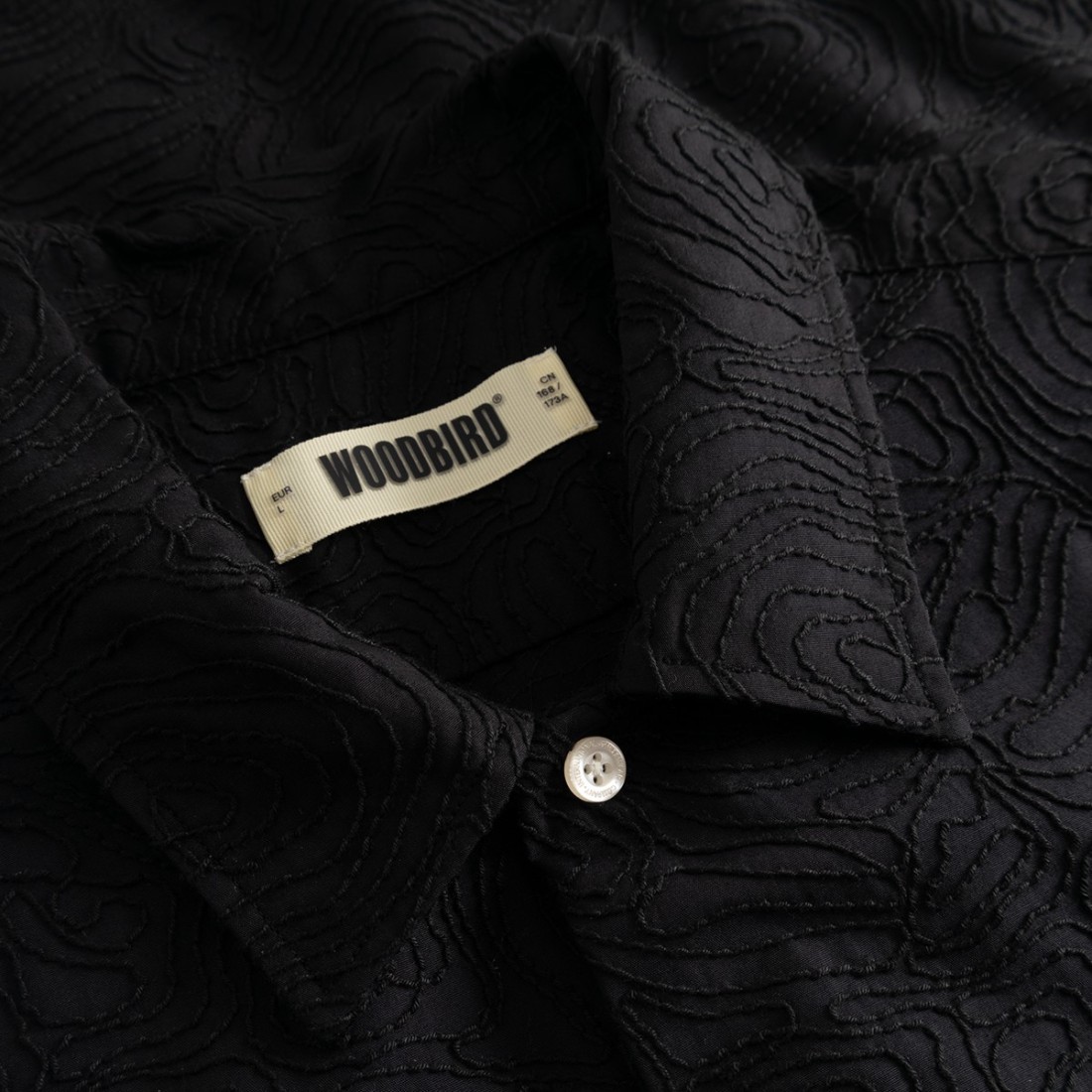 Découvrez la chemise à demi-manches Woodbird WBWang Embroidery, en tissu mélangé noir 65 % coton et 35 % polyester. Son design élégant est enrichi d'un délicat motif brodé, parfait pour un style décontracté mais soigné grâce à sa coupe ample. Légère et confortable, elle est idéale pour affronter la journée avec praticité sans renoncer aux détails de classe.
