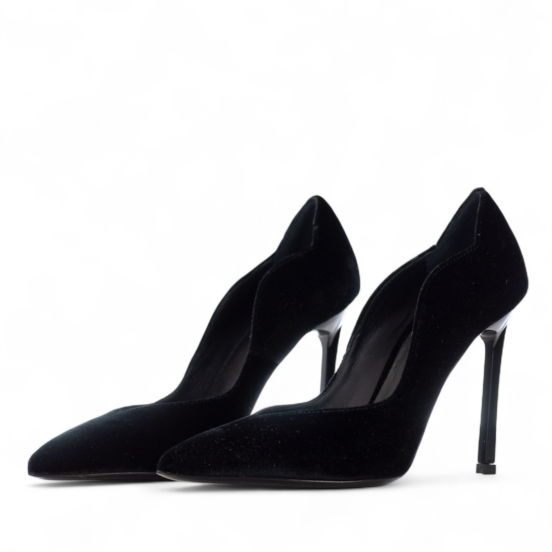 Décolleté G.P. Bologna en velours noir, élégant et original. Le talon d'environ 10 cm affine la silhouette, tandis que le design raffiné les rend parfaites pour toutes les occasions. La semelle et la doublure en cuir garantissent le confort, et la semelle en cuir assure durabilité et qualité. Une touche de style unique pour compléter votre tenue avec classe.Notre service client est disponible du lundi au samedi de 10h00 à 19h30