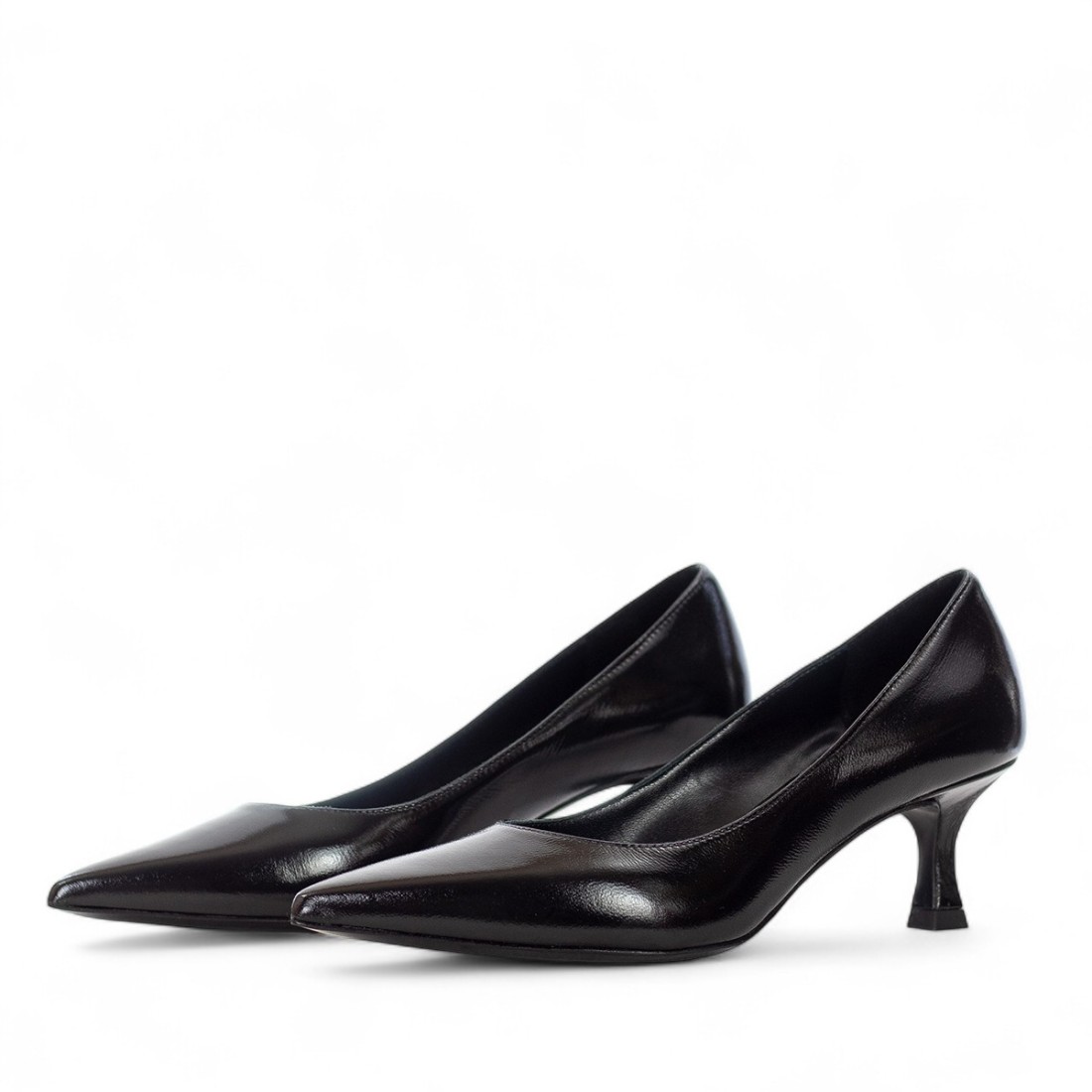 Décolleté en cuir noir brillant au charme intemporel. Le talon d'environ 5 cm affine la silhouette et confère de l'élégance à chaque pas. La doublure et la semelle intérieure en cuir offrent confort et qualité, tandis que la semelle en cuir garantit stabilité et durabilité. Un modèle raffiné et polyvalent, idéal pour ajouter une touche de classe à vos tenues les plus élégantes.