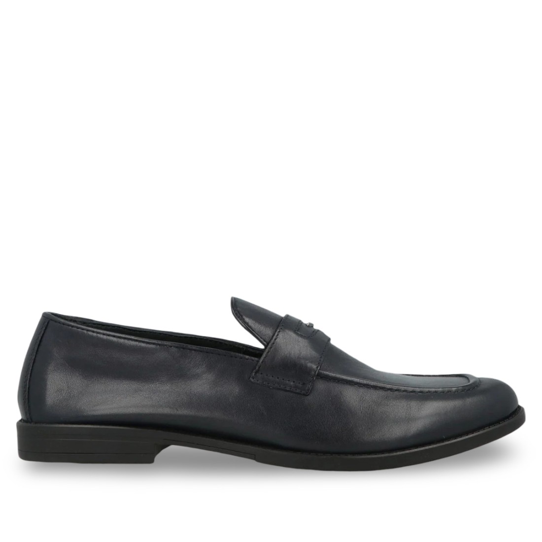 GUARDIANI - Elio Moc loafer en cuir bleu marine, élégant et polyvalent. Il est doté d'une bride en cuir avec des clous à logo sur le dessus et d'une semelle en caoutchouc pour le confort et la durabilité. Parfait pour un style raffiné en toute occasion, il allie design contemporain et qualité de fabrication.