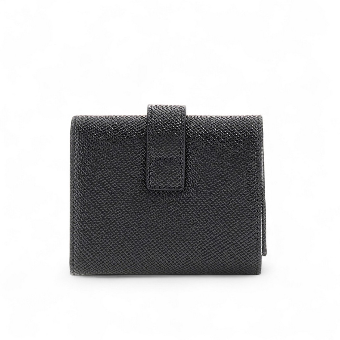 GUESS Rosalba mini portefeuille en faux cuir noir avec une élégante finition saffiano et une quincaillerie or pâle. Fermeture à glissière, compartiment principal avec poche intérieure pour la monnaie et fentes pour cartes de crédit. Logo en métal sur le devant. Dimensions compactes 11x9x2 cm, idéal pour la praticité et le style.