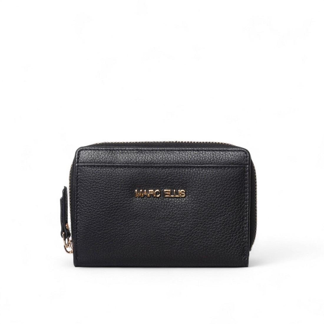 Portefeuille élégant Marc Ellis en faux cuir grainé noir avec logo en métal sur le devant. Modèle bifold avec compartiment à rabat sur le devant et fermeture magnétique, fentes pour cartes et poche principale avec fermeture à glissière dorée sur tout le pourtour. Un mélange parfait de style et de fonctionnalité pour toutes les occasions. Dimensions : 14 x 9 x 3 cm.