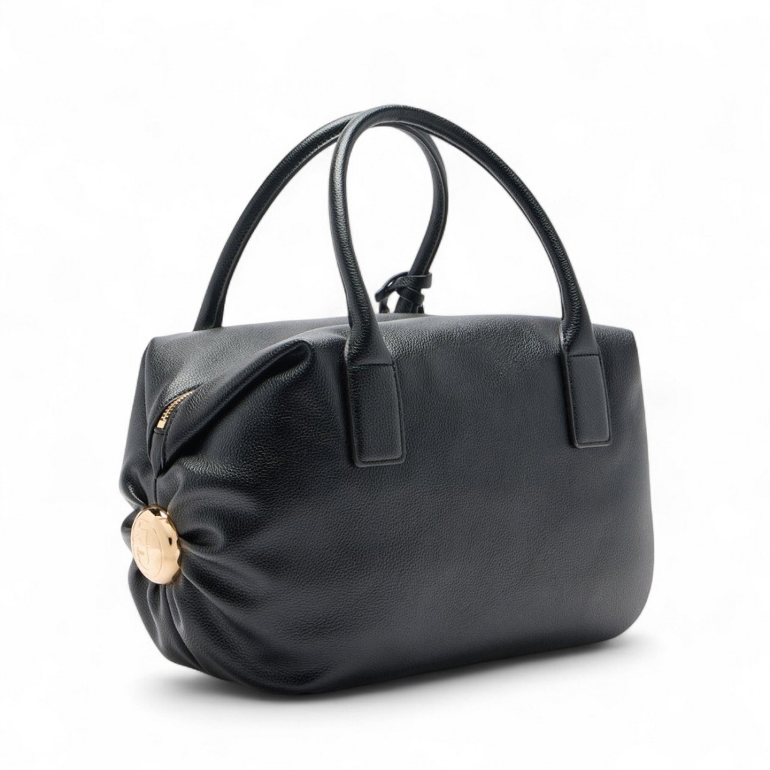 Élégant sac à main LIU JO en simili-cuir noir à effet tambour, orné d'un logo en relief et d'une breloque décorative. Doté d'anses confortables, d'une bandoulière réglable et amovible, de deux compartiments zippés et d'une poche intérieure. Doublé et soigné dans les moindres détails, il est doté de pieds en métal et d'une fermeture à bouton magnétique. Dimensions : 34x15x25 cm. Parfait pour toutes les occasions.Notre service client est disponible du lundi au samedi de 10h00 à 19h30