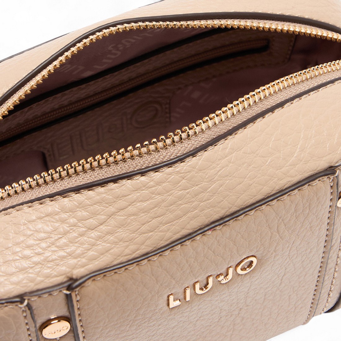 Sac à bandoulière LIU JO en faux cuir beige neutre à effet tambour, compact et polyvalent. Avec des dimensions de 22x7x15 cm, il offre un compartiment central pratique avec fermeture à glissière et une doublure ornée d'un logo. Le design élégant est orné du logo en lettres, parfait pour compléter chaque look avec style et sophistication.