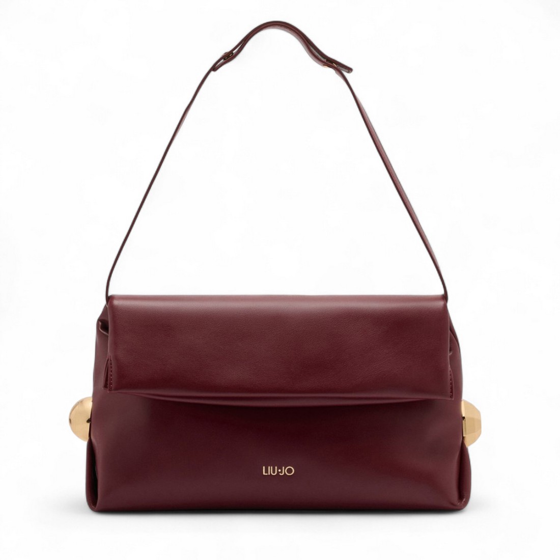 Élégant sac à bandoulière LIU JO en faux cuir rouge, parfait pour toutes les occasions. Avec son design raffiné, son logo en métal sur le devant et ses clous dorés sur les côtés, il allie style et fonctionnalité. Doté d'une poignée confortable et d'une poche intérieure zippée, il mesure 30 x 11 x 18 cm et est idéal pour compléter un look décontracté ou chic.