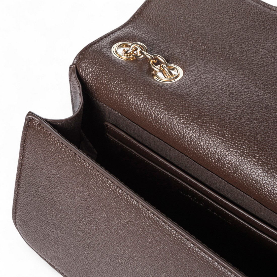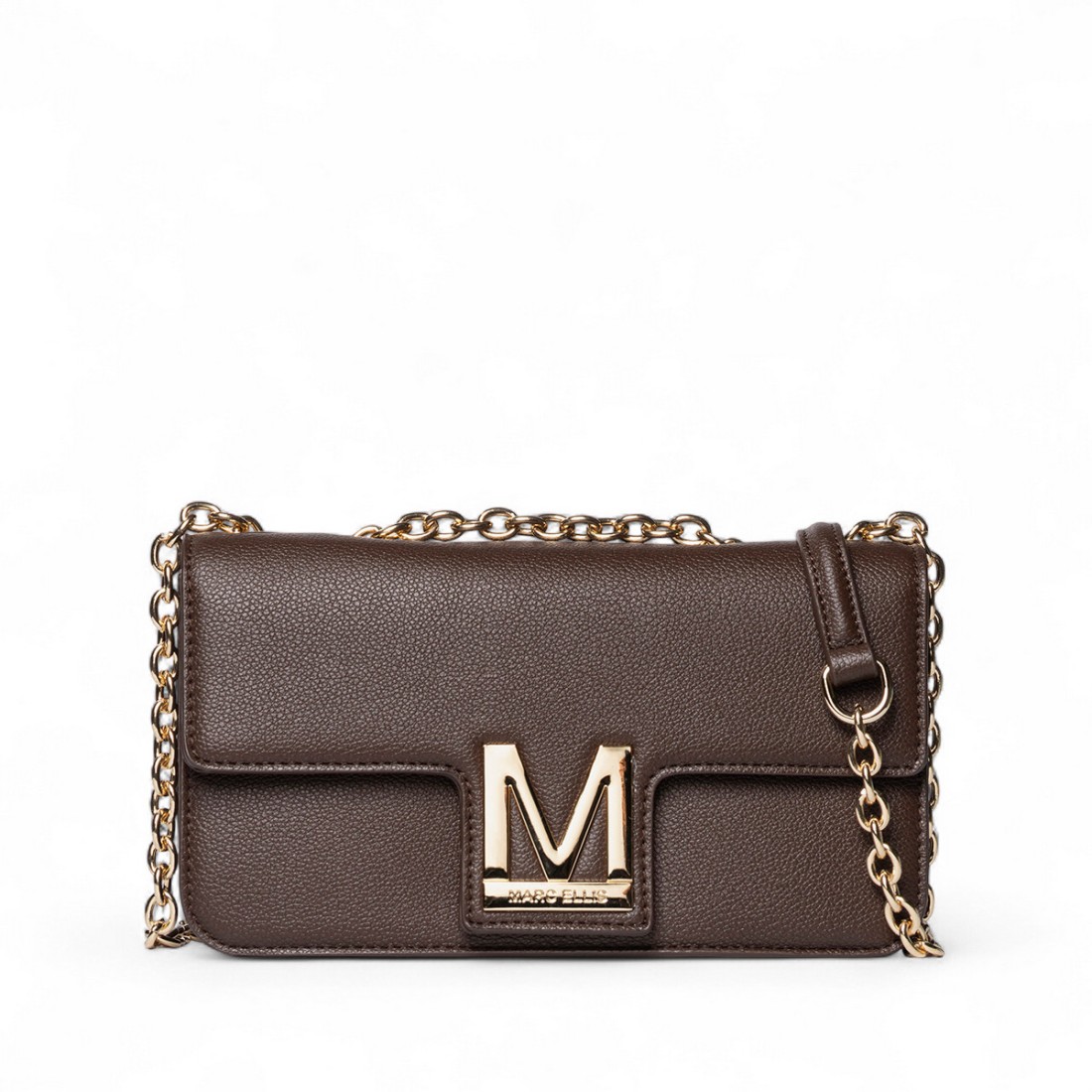 Sac à bandoulière Marc Ellis en simili-cuir martelé de couleur cacao, élégant et polyvalent pour toutes les occasions. Doté d'une bandoulière en chaîne et faux cuir et d'une fermeture à bouton magnétique, il allie style et praticité dans un design raffiné. Placage d'or. Dimensions compactes 25x14x8 cm, parfait pour compléter les looks décontractés et chics.Notre service client est disponible du lundi au samedi de 10h00 à 19h30