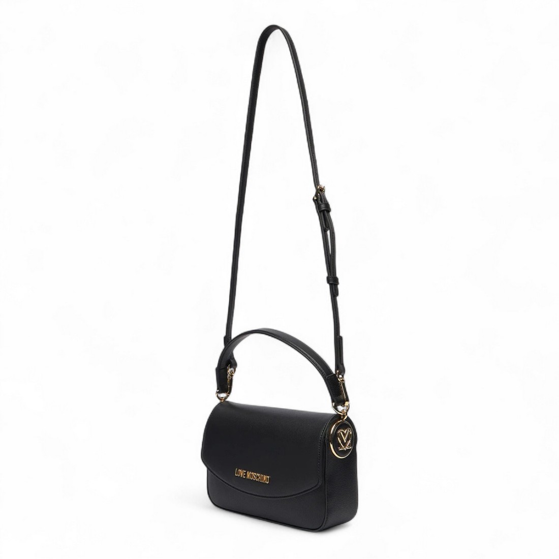 Élégant et compact, ce sac à bandoulière Love Moschino en noir allie style et praticité. Fabriqué en faux cuir résistant, il présente une structure rigide et un rabat avec fermeture magnétique. Doté d'un compartiment principal et d'une poche intérieure plate, il est parfait pour les essentiels de tous les jours. La sangle réglable et les poignées de 8 cm garantissent confort et polyvalence. Dimensions : 23 x 15 x 6 cm.