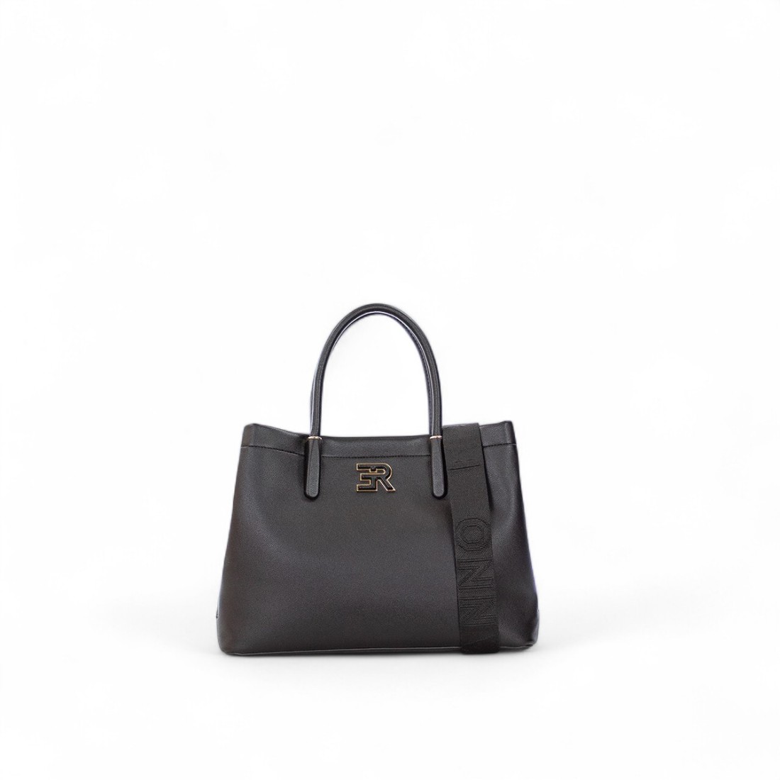 Élégant sac à main en faux cuir noir, parfait pour la saison automne-hiver. Compact mais spacieux, il est doté d'une fermeture à clip et à glissière pour plus de sécurité. Il est équipé d'une bandoulière réglable et amovible pour une utilisation polyvalente. Dimensions : hauteur 22 cm, largeur 32 cm, profondeur 11 cm. Un accessoire raffiné qui complète chaque look avec style.