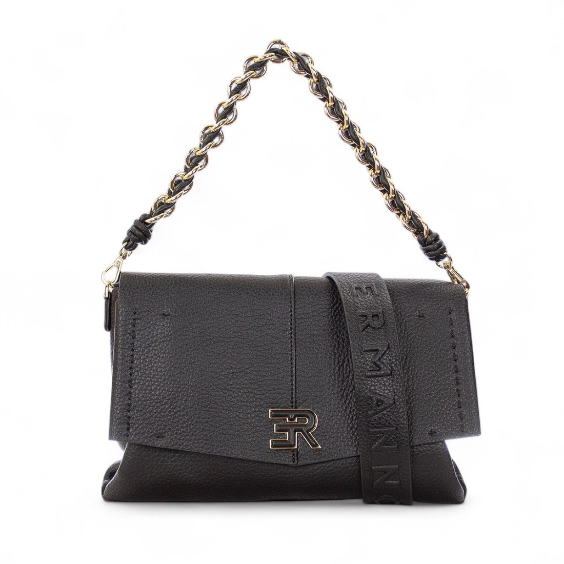 Sac à bandoulière Ermanno Firenze en similicuir martelé de haute qualité, souple et durable. Design épuré et moderne avec logo métallique ER sur le rabat avant et fermeture aimantée. Intérieur zippé, détails en métal doré et bandoulière "ERMANNO" avec logo. La poignée amovible permet de le porter à l'épaule ou en bandoulière, alliant élégance et praticité. Dimensions : 30 x 20 x 2 cm.Notre service client est disponible du lundi au samedi de 10h00 à 19h30