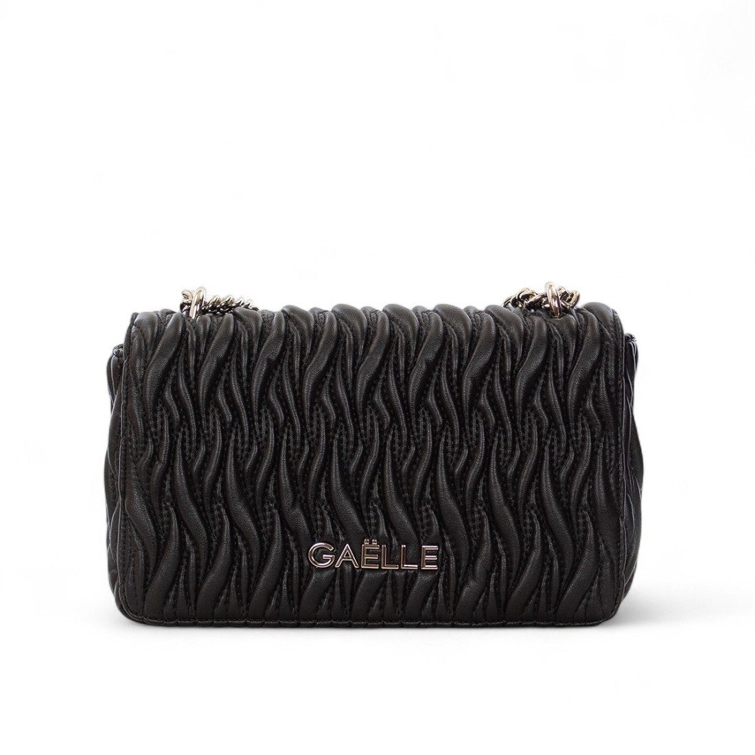 Sac Gaelle en faux cuir matelassé noir, orné du logo en lettres métalliques sur le devant. Doté d'une bandoulière fixe en simili-cuir, il allie élégance et praticité en toute occasion. Ses dimensions compactes de 27x16x10 cm le rendent parfait pour compléter les looks de tous les jours ou de soirée avec une touche de style moderne.Notre service client est disponible du lundi au samedi de 10h00 à 19h30