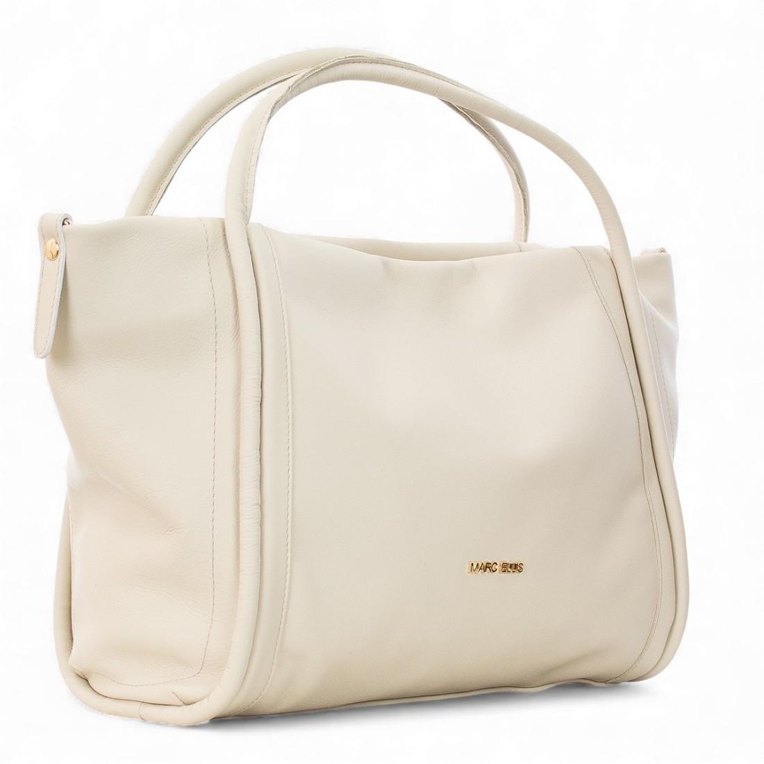 Sac Marc Ellis en cuir beige lisse avec détails dorés et logo en lettres sur le devant. Muni de deux poignées en cuir et d'une anse à l'épaule, il se ferme à l'aide d'une fermeture éclair. Elégant et polyvalent, il mesure 36x28x15 cm.Notre service client est disponible du lundi au samedi de 10h00 à 19h30