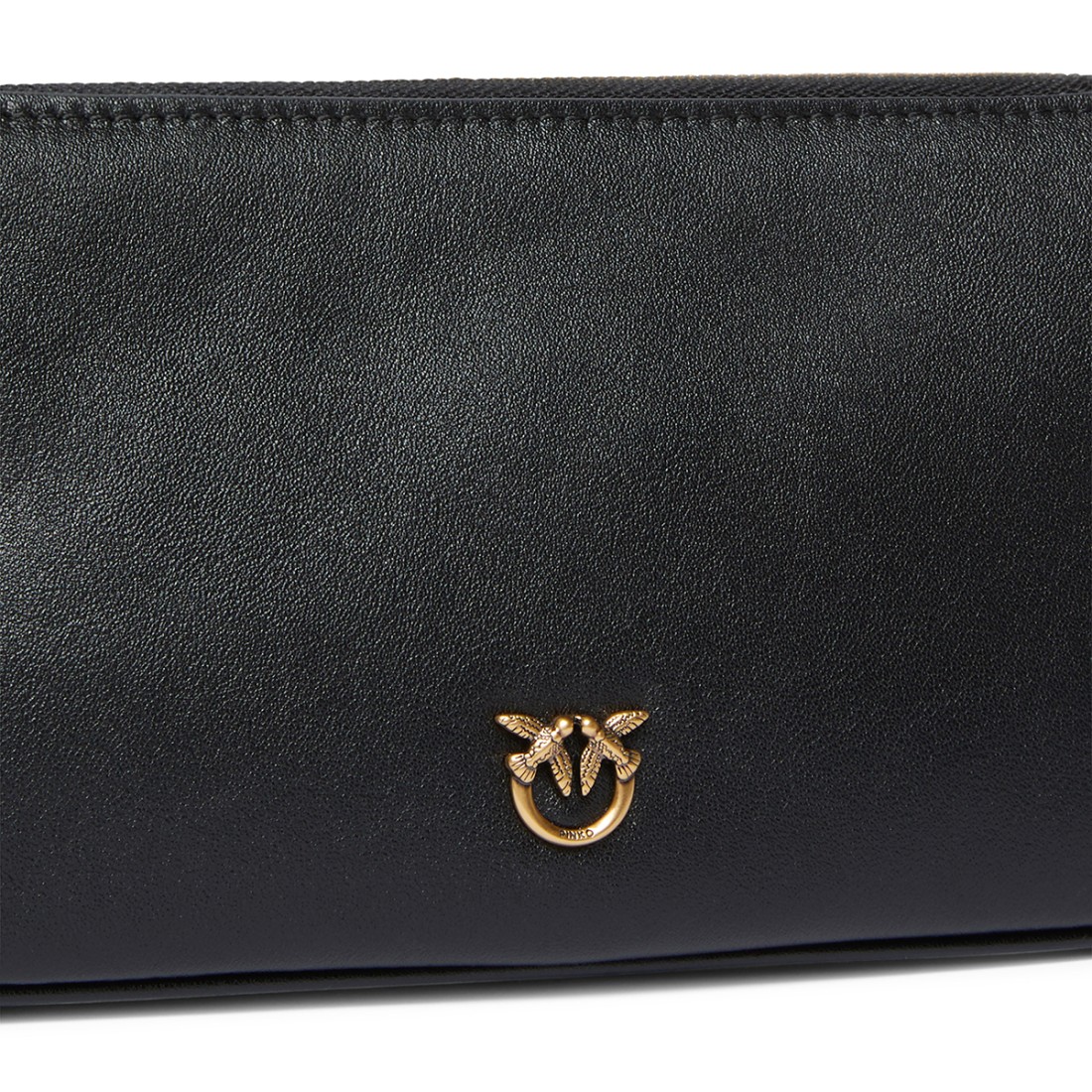 Sac Pinko Mini Half Moon en cuir noir souple, au design rectangulaire et compact. Doté d'une fermeture éclair et d'une bandoulière réglable, il allie praticité et style pour toutes les occasions. Le logo Love Birds ajoute une touche distinctive, ce qui le rend parfait pour ceux qui recherchent l'élégance et la fonctionnalité dans un format compact. Dimensions : 23 x 11 x 5 cm.