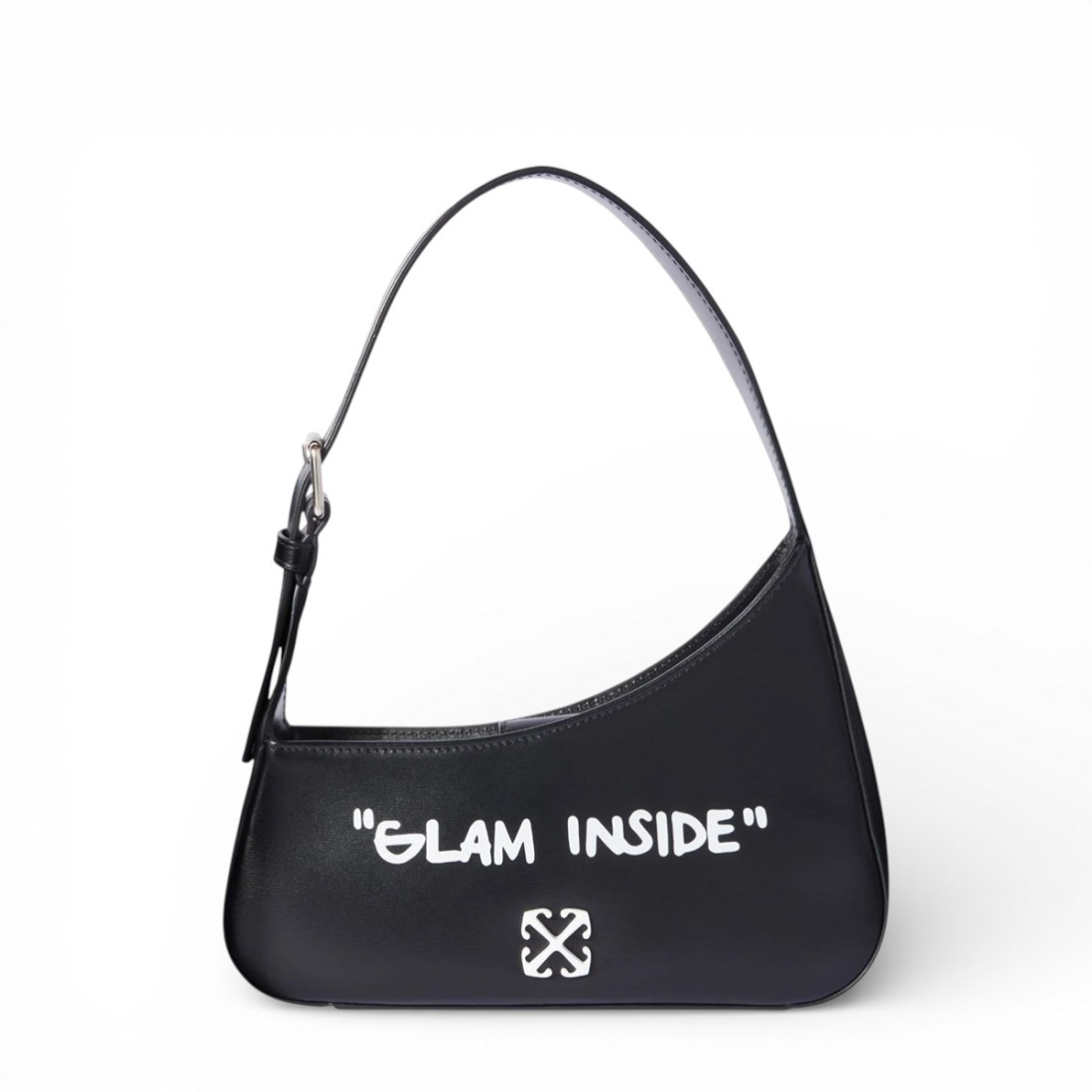 Sac à bandoulière OFF WHITE en cuir de veau noir au design essentiel et contemporain. Il est doté d'un rabat supérieur avec fermeture magnétique et d'une bandoulière réglable pour un ajustement polyvalent. Il est doté d'une poche à soufflet pratique à l'arrière et d'une poche intérieure pour organiser les objets essentiels. Le lettrage contrasté à l'avant et à l'arrière ajoute une touche distinctive. Dimensions : 23,5 x 16,5 x 5,5 cm.
