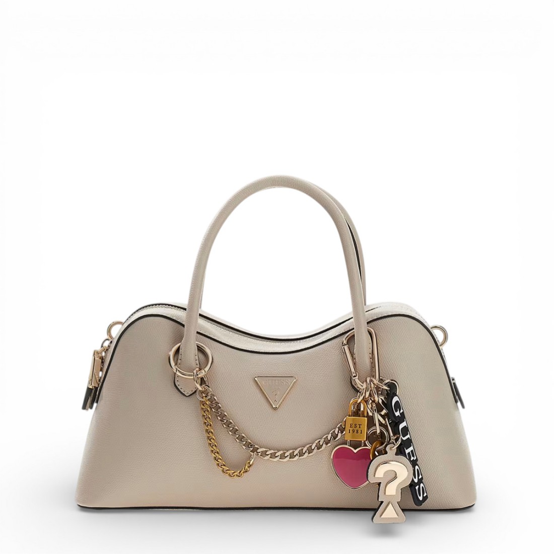 Sac à main Davina de GUESS, en faux cuir taupe à effet safran, avec un élégant badge logo sur le devant. Le design est enrichi d'une chaîne avec des breloques amovibles qui lui donne une touche distinctive. Il est doté d'une double poignée en similicuir, d'une bandoulière réglable et amovible et d'une fermeture zippée pratique. Parfait pour vous accompagner tous les jours avec style. Dimensions : 31 x 16 x 10 cm.Notre service client est disponible du lundi au samedi de 10h00 à 19h30