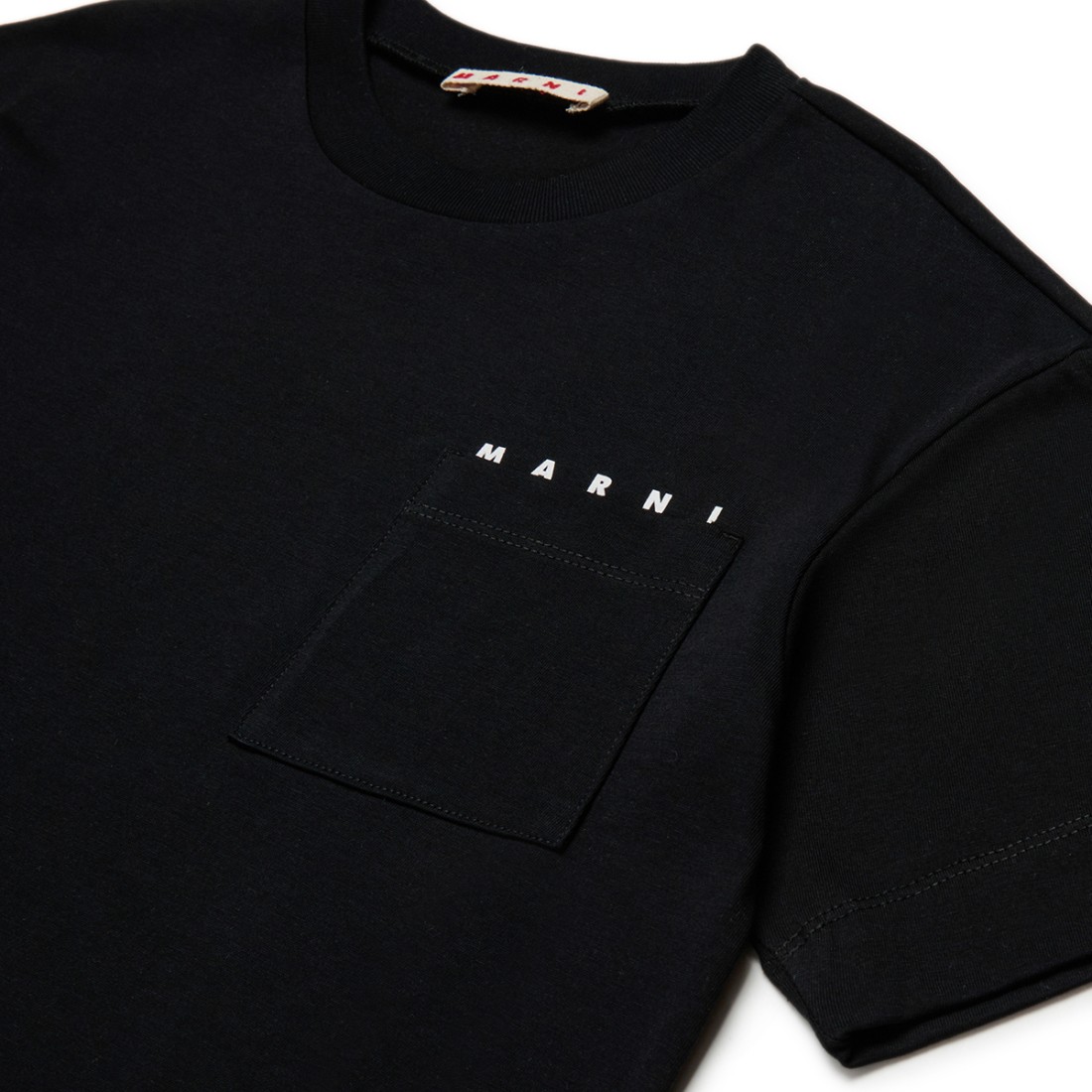 T-shirt MARNI en jersey de coton noir, un vêtement essentiel qui allie confort et style pour une utilisation quotidienne. Le modèle présente un col ras du cou, des manches courtes et une poche poitrine pratique avec un détail en forme de cœur. Le logo en lettres contrastées au-dessus de la poche ajoute une touche distinctive. 100% coton, coupe régulière*Article de la collection enfants, peut également être porté par les femmes.