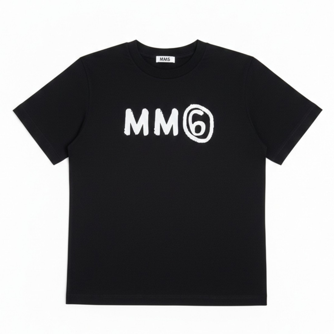 T-shirt MM6 en pur coton noir à la ligne essentielle et polyvalente, doté d'un col ras du cou classique, du logo MM6 imprimé sur la poitrine et d'une coupe régulière. Fini avec la couture iconique au dos, il est parfait pour un look quotidien soigné et contemporain.*Article de la collection enfants, qui peut également être porté par les femmes.