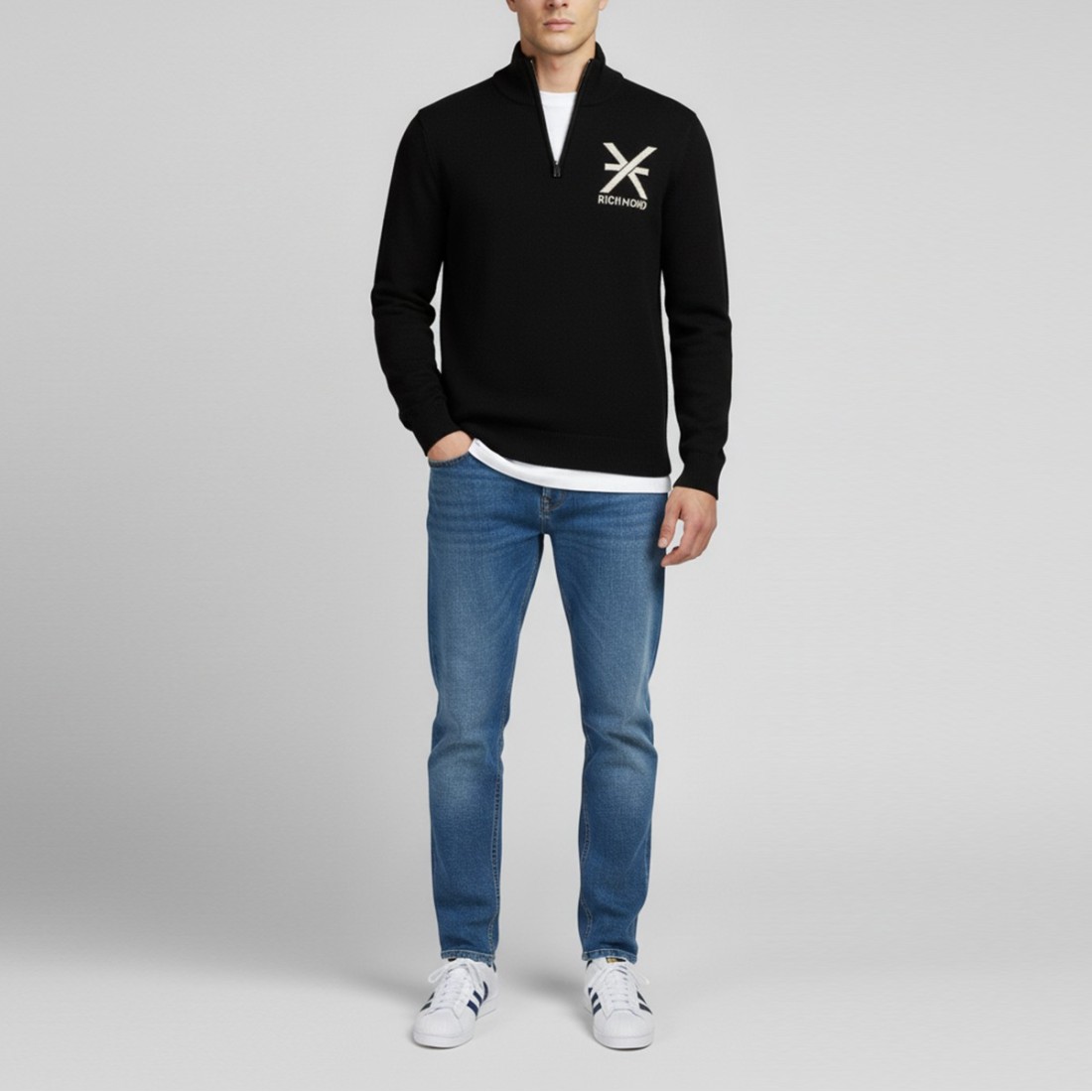 Pull en maille douce pour homme Richmond X avec col ras du cou et fermeture éclair centrale pour une touche de modernité. Manches longues, logo discret sur la poitrine et bordures côtelées à l'ourlet et aux poignets. Coupe régulière, idéale pour un look quotidien soigné.