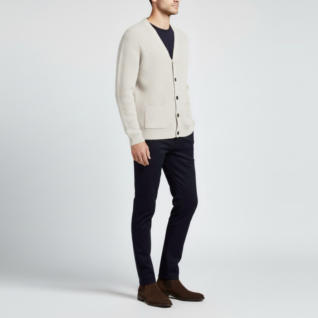 Cardigan gris OUTFIT en laine mélangée douce, avec un effet rocker qui ajoute du piquant au look. Il est doté d'une fermeture à cinq boutons et de poches latérales plaquées pratiques. Parfait pour compléter une tenue décontractée avec une touche de style et de confort.