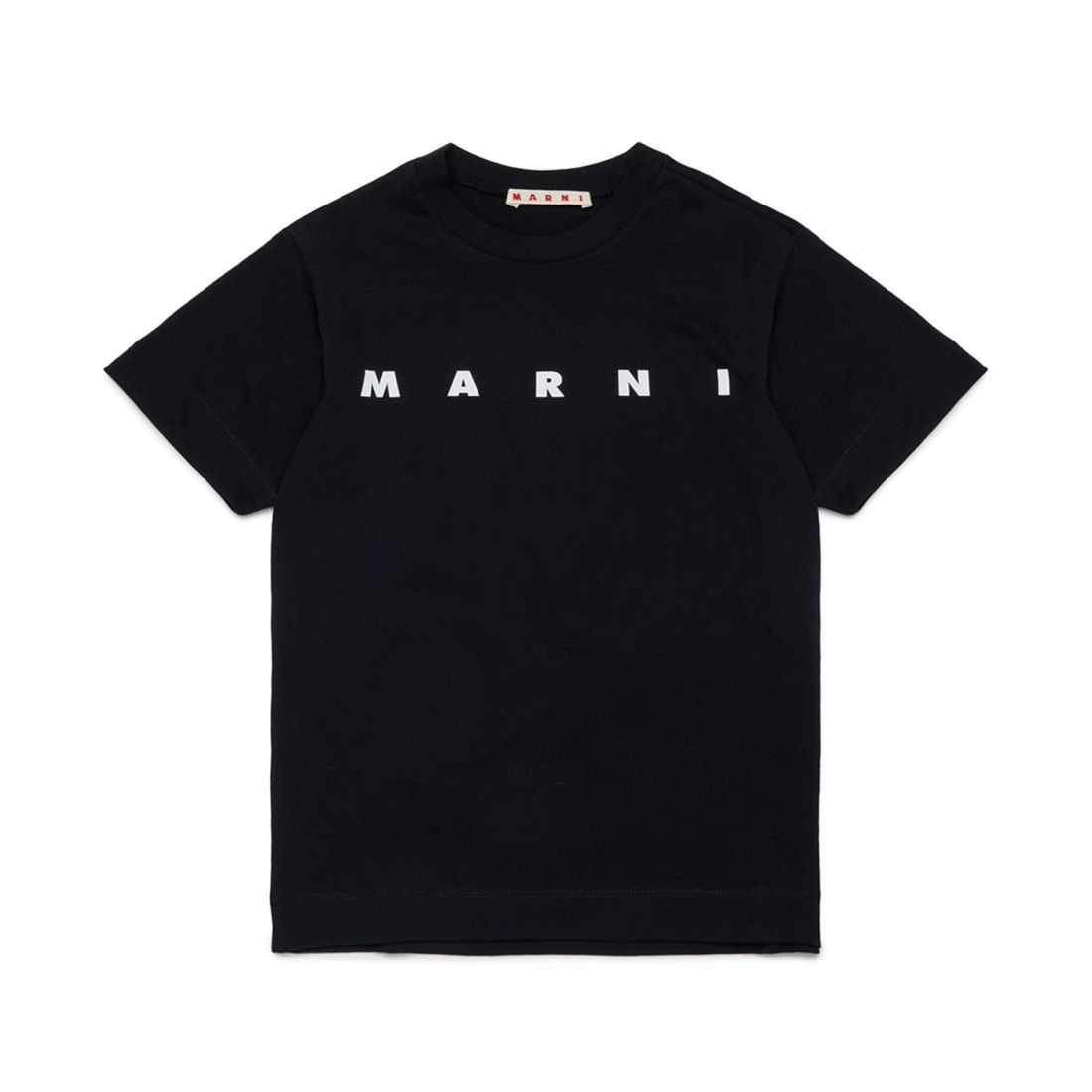 T-shirt MARNI à col ras du cou en jersey de coton noir doux. Le logo en lettres contrastées imprimé sur le devant donne du caractère et de la reconnaissance au vêtement, ce qui le rend parfait pour des looks décontractés et élégants. Coupe régulière, idéale pour un usage quotidien.*Article de la collection enfants, peut également être porté par les femmes.