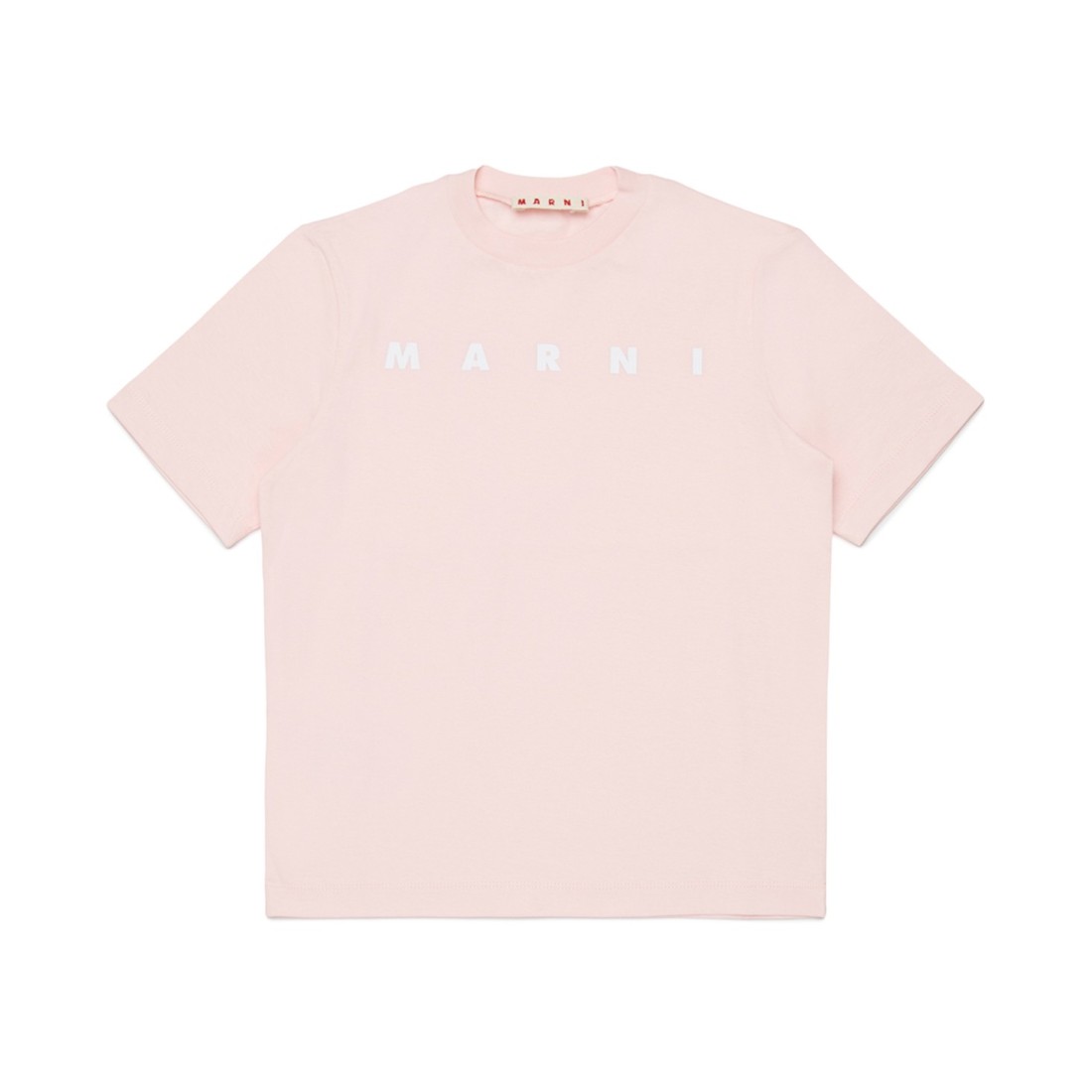 T-shirt MARNI per bambina realizzata in morbido jersey di puro cotone rosa pastello. Il logo lettering a contrasto sul davanti dona un tocco iconico e riconoscibile, mantenendo uno stile essenziale e contemporaneo. Vestibilità regolare, ideale per completare look quotidiani comodi e versatili.