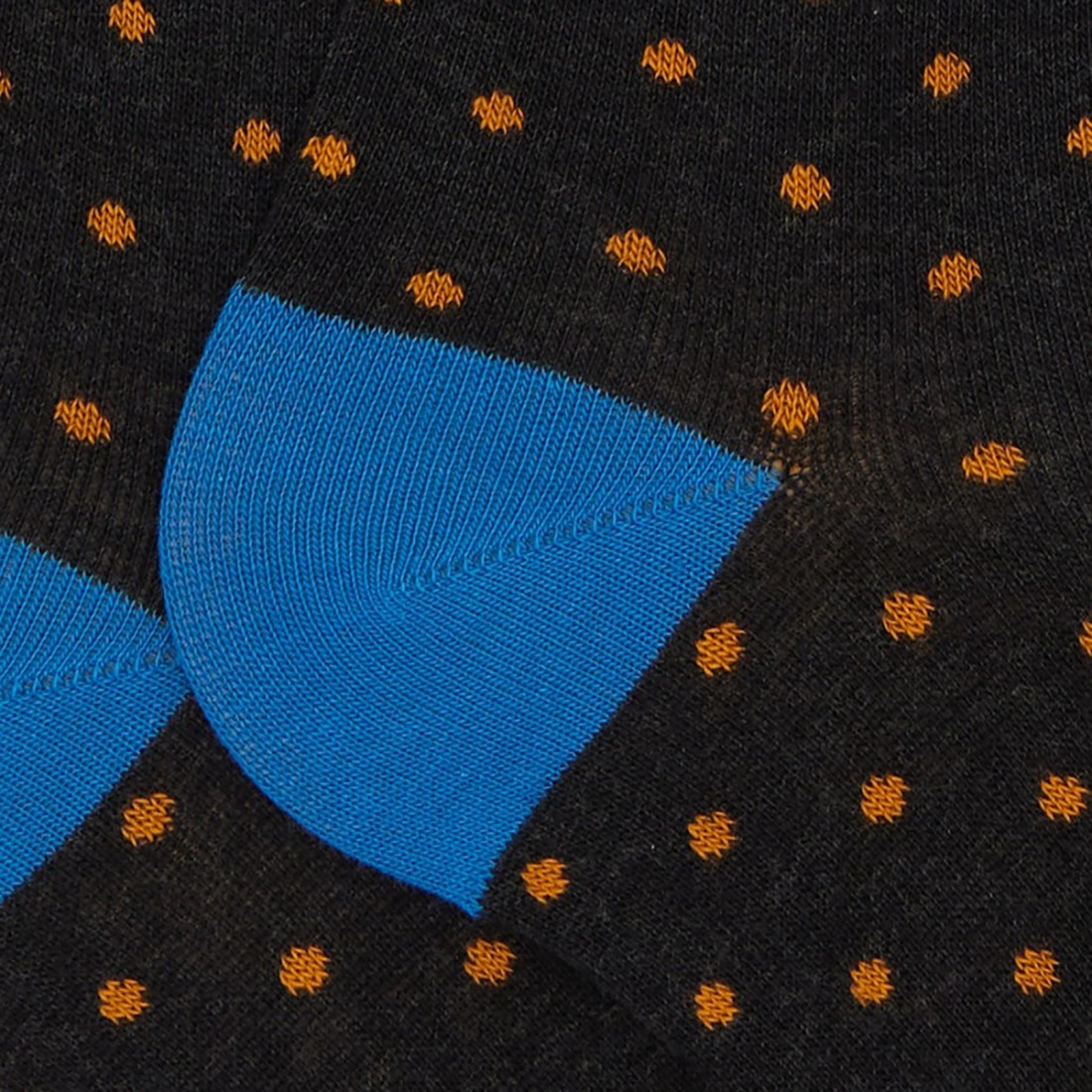 Calze lunghe da uomo in morbidissimo cotone, realizzate in Italia. La fantasia a pois nei toni del grigio le rende eleganti e versatili, ideali per ogni look. Il dettaglio del brand Gallo in punta a contrasto aggiunge stile e riconoscibilità. Qualità ed eccellenza artigianale dal 1927.