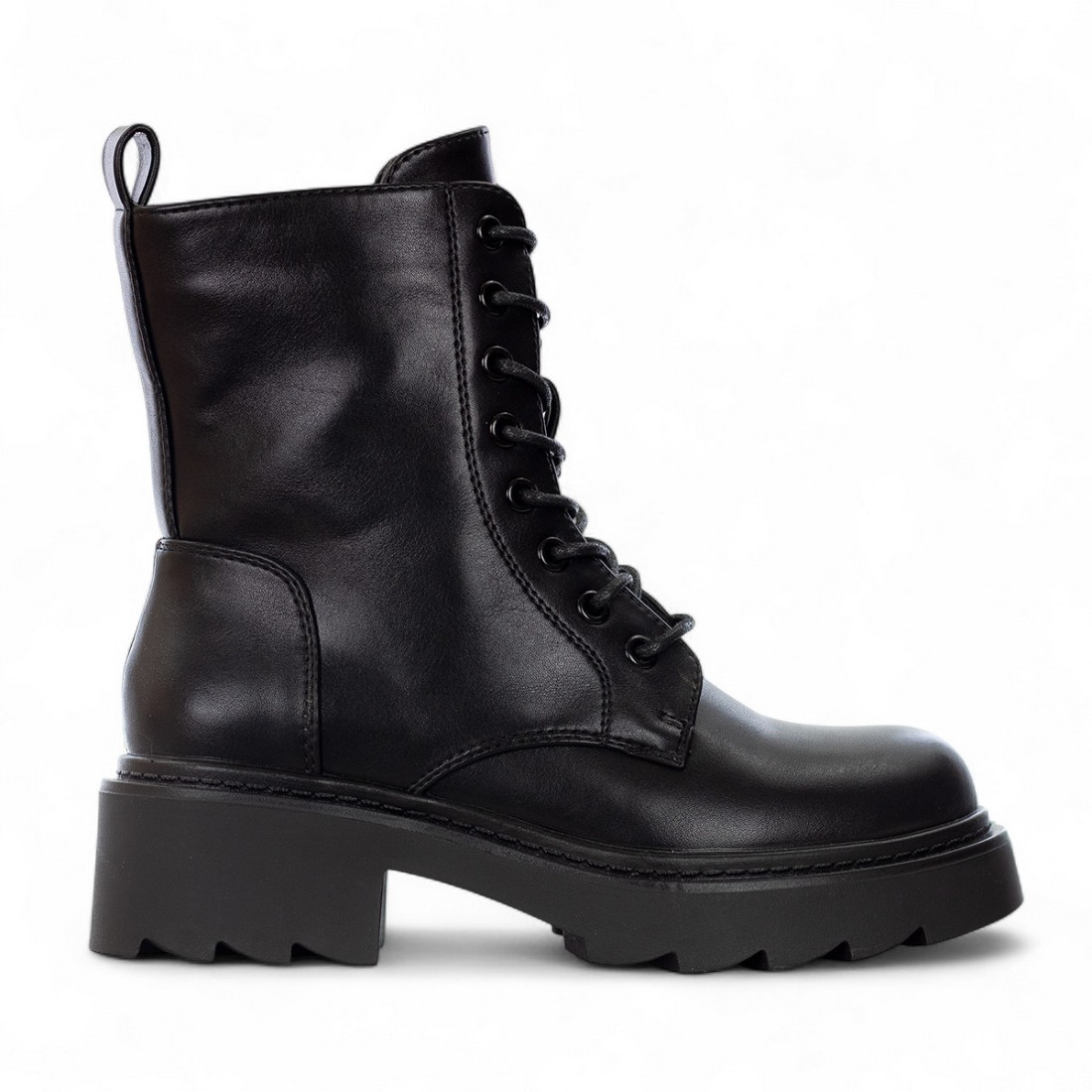Anfibio EXÉ a 8 buchi in ecopelle nera, caratterizzato da uno stile deciso e versatile. Dotato di pratica zip laterale, garantisce comfort e facilità di calzata. Fondo in gomma da 50mm per un passo stabile e sicuro, con fodera e suola interna in tessuto per un tocco di morbidezza e traspirabilità. Perfetto per look urbani e contemporanei.Il nostro servizio clienti è a tua disposizione dal Lunedì al Sabato dalle 10:00 alle 19:30.