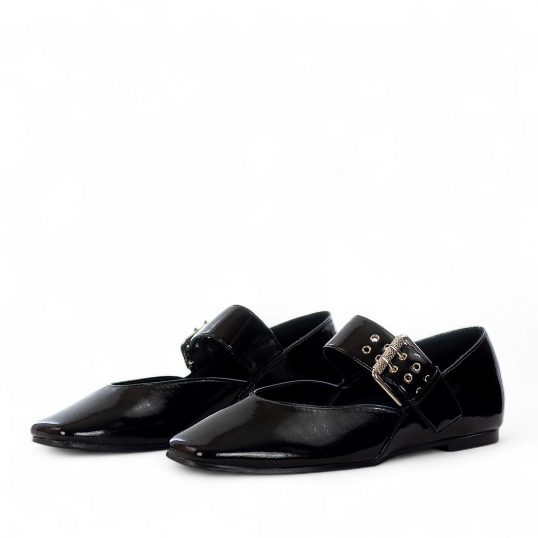Ballerina EXÉ in naplak nero con elegante cinturino regolabile a doppio ardiglione. Suola in gomma per stabilità, fodera interna in ecopelle e soletta in pelle per comfort e traspirazione. Perfetta per uno stile raffinato e versatile, ideale per completare look quotidiani o eleganti.Il nostro servizio clienti è a tua disposizione dal Lunedì al Sabato dalle 10:00 alle 19:30.