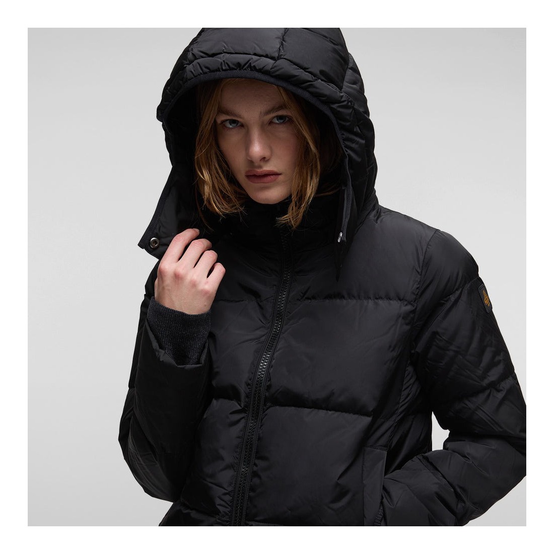 Piumino invernale da donna dal design moderno e leggermente oversize, ideale per un look attuale e confortevole. L’imbottitura in piuma 90-10 assicura calore e morbidezza anche nei giorni più freddi. Realizzato in nylon satinato, regala un’eleganza raffinata e un tocco luminoso. Il collo alto e il cappuccio removibile offrono praticità e versatilità, perfetti per ogni occasione invernale.