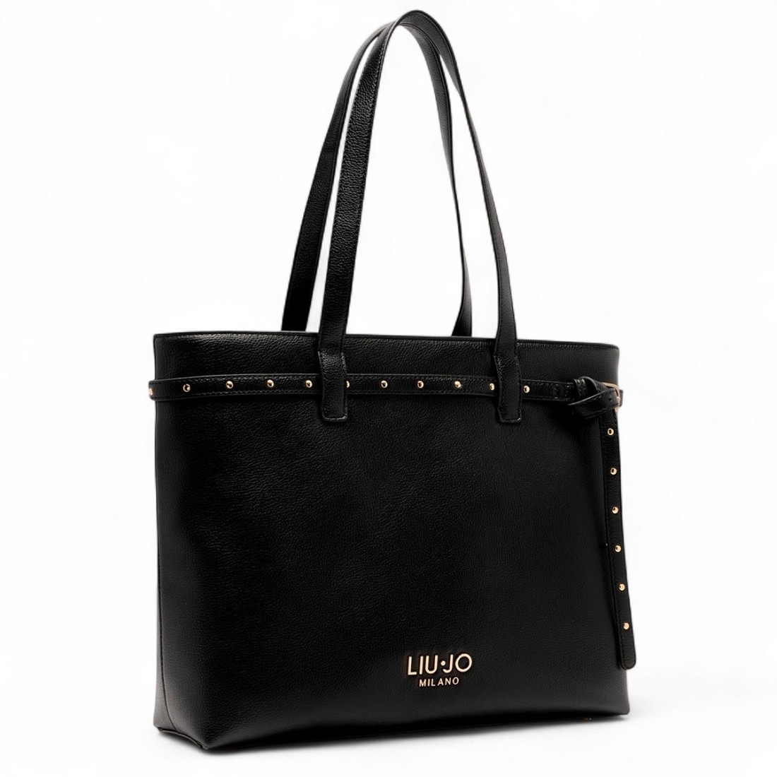 Elegante borsa tote LIU JO in ecopelle nera con stampa effetto bottalato. Dotata di logo in metallo, cinturino con borchie e comodi manici, è perfetta per ogni occasione. Presenta chiusura con zip, tasca interna, fodera e etichetta logate. Misure 43 x 8 x 30 cm, ideale per un look raffinato e pratico ogni giorno.Il nostro servizio clienti è a tua disposizione dal Lunedì al Sabato dalle 10:00 alle 19:30.