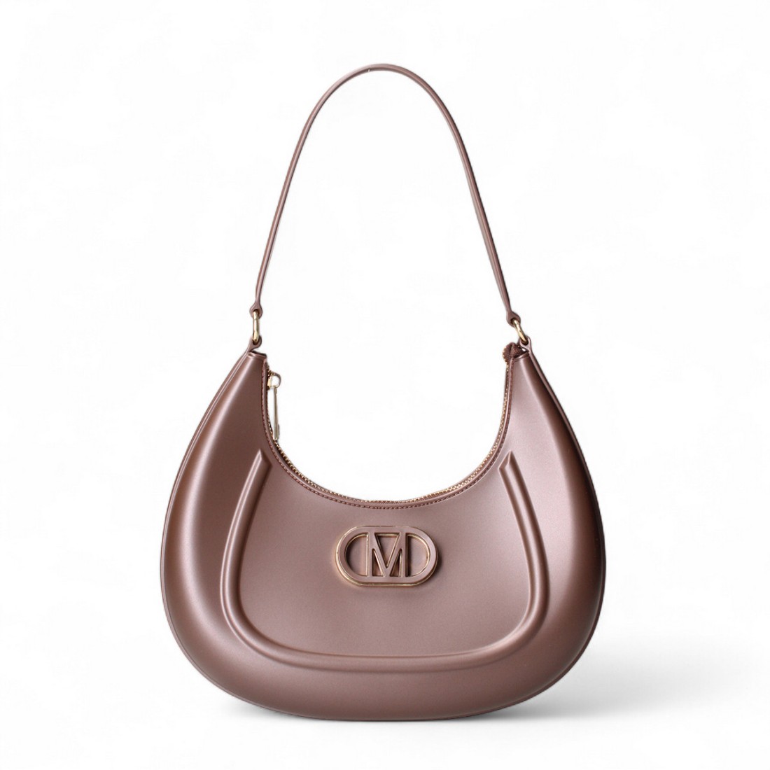 Elegante borsa a tracolla hobo in PVC color cacao con logo monogramma in rilievo sul davanti. Dotata di tracolla rimovibile e regolabile in tessuto e pratica chiusura con zip. Galvaniche oro. Perfetta per ogni occasione, unisce stile moderno e funzionalità nelle dimensioni compatte di 26x21x5 cm.Il nostro servizio clienti è a tua disposizione dal Lunedì al Sabato dalle 10:00 alle 19:30.