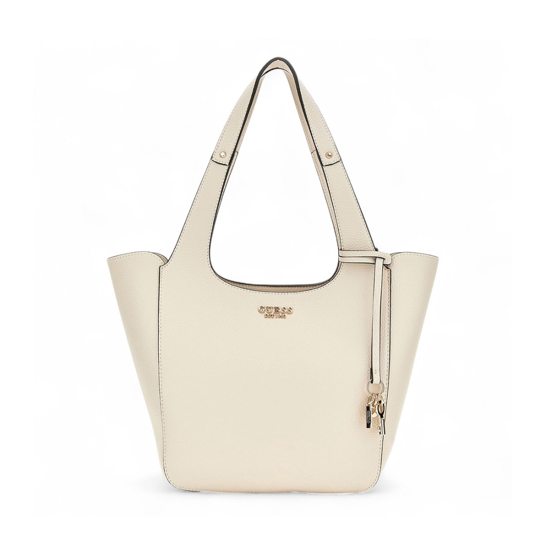 Borsa Guess in elegante tonalità beige, realizzata in resistente imitazione pelle naturale. Dal design strutturato e compatto, è ideale per chi cerca stile e praticità. Dispone di un unico scomparto con chiusura a cerniera e una tasca piatta interna per piccoli oggetti. Le maniglie alte 24 cm consentono un comodo trasporto a spalla. Dimensioni: 26/45 x 26 x 13 cm. Rigidità dura, non adatta a formati A4.Il nostro servizio clienti è a tua disposizione dal Lunedì al Sabato dalle 10:00 alle 19:30.
