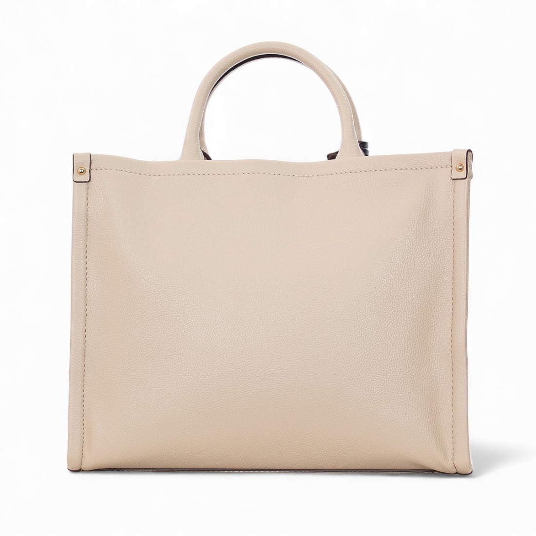 Elegante shopping bag Liu Jo in ecopelle bottalata beige neutro, misura 34x13x27 cm. Dotata di manici comodi e tracolla regolabile e removibile, offre chiusura con zip e tasca interna con zip. Fodera interna logata, charm distintivo e logo in metallo impreziosiscono il design, mentre i piedini metallici garantiscono stabilità e protezione.
