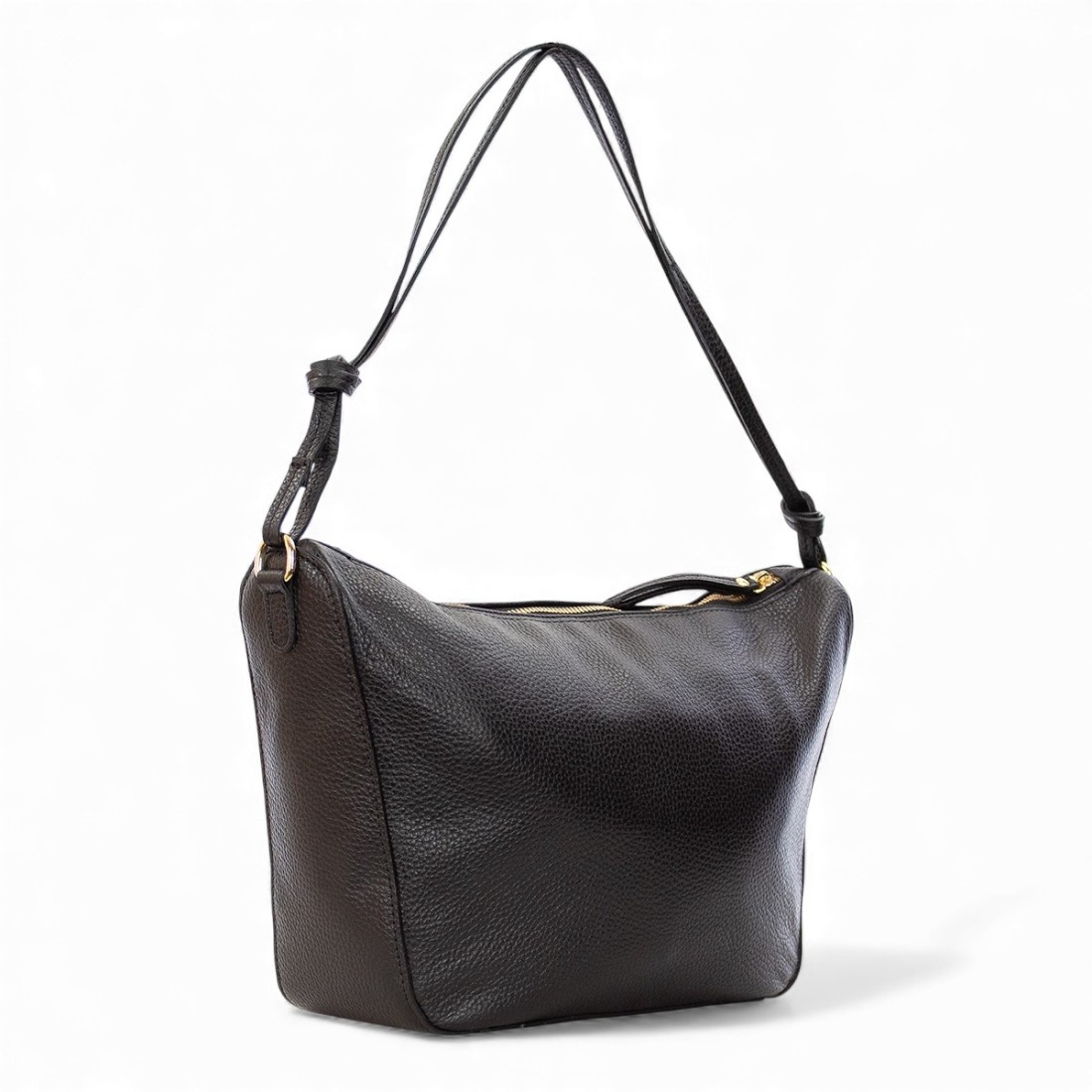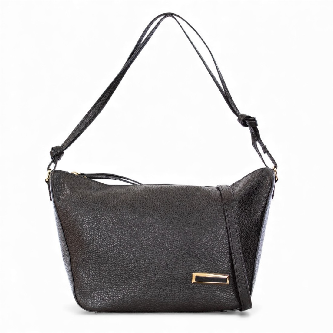 La Zephira M Do di Marc Ellis è una borsa a spalla media in pelle nera bottalata, dal design sofisticato e linee pulite. Pratica e versatile, con manico singolo e chiusura a cerniera, tracolla removibile in pelle è perfetta per il giorno e la sera. Dotata di tasca interna, misura L 34 x H 22 x W 10 cm, unendo eleganza discreta e funzionalità in ogni occasione.