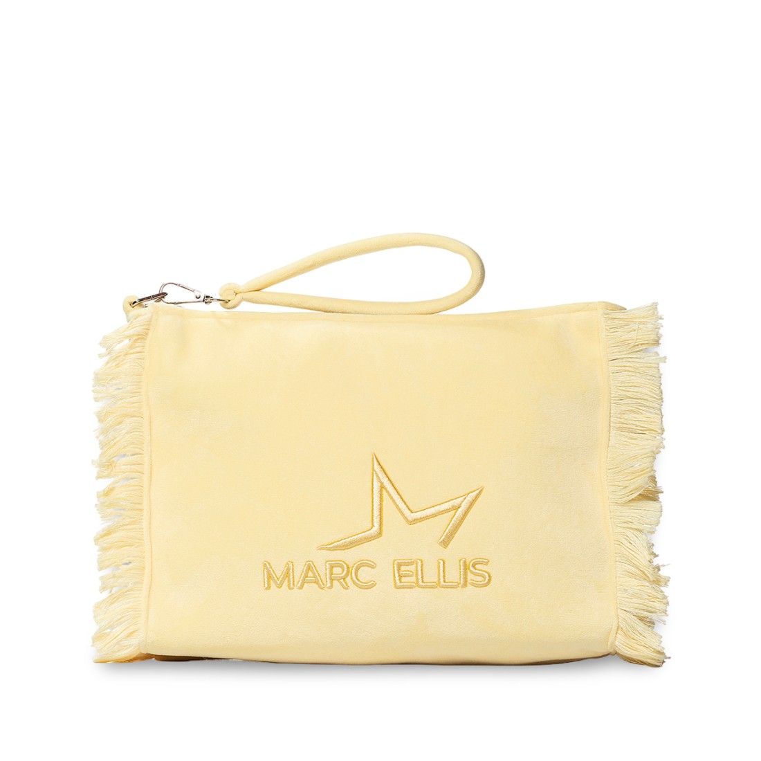 Scopri la pochette Buby Calypso di MARC ELLIS: elegante clutch in poliestere giallo con effetto scamosciato, impreziosita da frange lungo i bordi e logo ricamato sul davanti. Pratica e versatile, ha chiusura con zip e polsiera rimovibile. Perfetta per completare ogni look con stile e personalità. Dimensioni compatte: 30 x 21 x 7 cm.Il nostro servizio clienti è a tua disposizione dal Lunedì al Sabato dalle 10:00 alle 19:30.