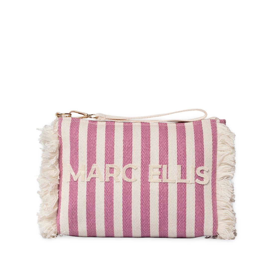 Scopri la pochette MARC ELLIS Buby Saint Joan S, elegante e versatile, realizzata in tessuto beige con fantasia a strisce verticali rosa con logo ricamato sul davanti e dettagli a frange sui bordi. Dotata di polsiera rimovibile e chiusura con zip, è perfetta per completare ogni look con un tocco di stile unico e moderno. Ideale da giorno e da sera.Il nostro servizio clienti è a tua disposizione dal Lunedì al Sabato dalle 10:00 alle 19:30.