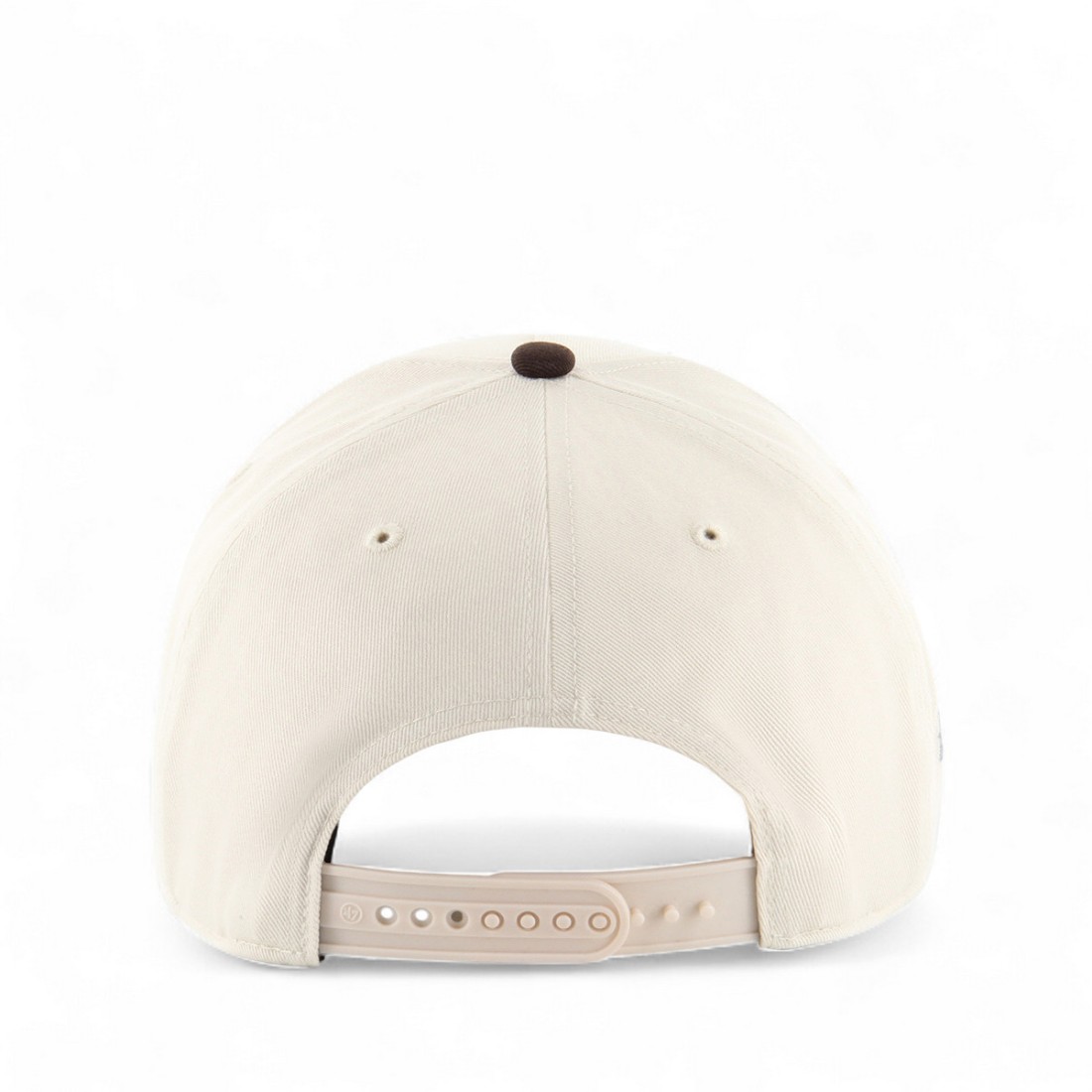 Cappello da baseball '47 BRAND in cotone beige, visiera precurvata marrone a contrasto e logo Oakland Athletics ricamato sul davanti. Chiusura posteriore regolabile in plastica per comfort ottimale. Un accessorio ideale per donare stile sportivo e personalità ai tuoi outfit quotidiani.