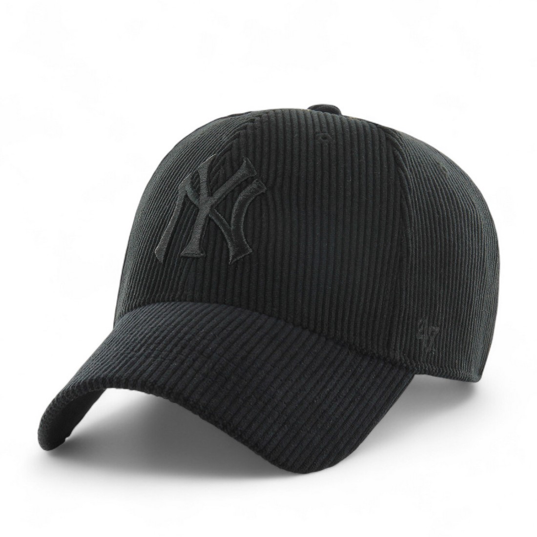 '47 Brand cappello da baseball in poliestere nero a costine, con iconico logo New York Yankees ricamato in tinta sul frontale. Design classico e confortevole, dotato di chiusura regolabile con fibbia in tessuto e bottone a pressione sul retro. Accessorio perfetto per un look sportivo e casual, ideale per gli amanti del baseball e dello streetwear.Il nostro servizio clienti è a tua disposizione dal Lunedì al Sabato dalle 10:00 alle 19:30.