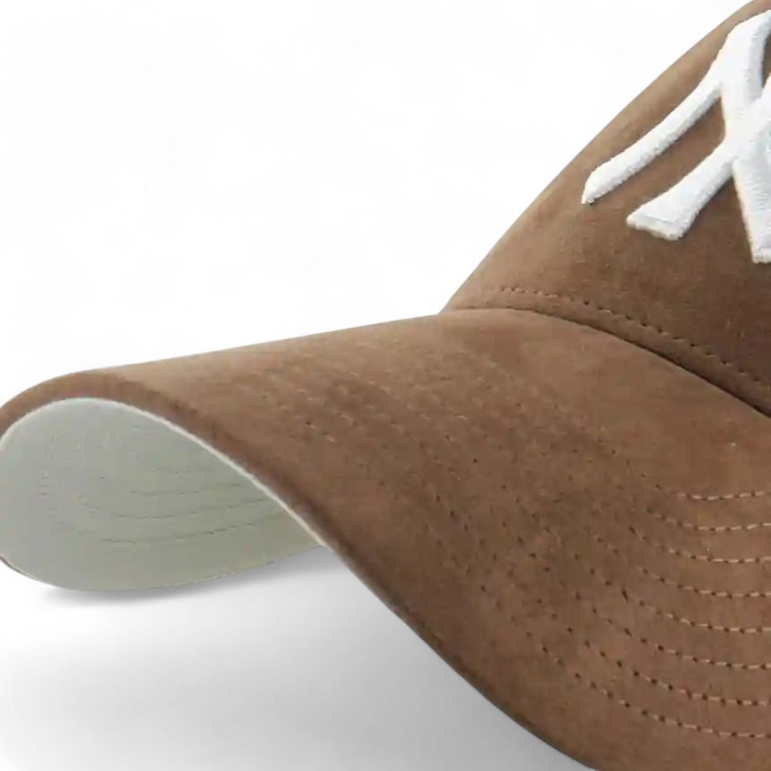 Cappello da baseball '47 BRAND in poliestere marrone effetto scamosciato, con logo "New York Yankees" ricamato in bianco sul davanti. Design sportivo e curato nei dettagli, con fibbia regolabile in tessuto e bottone a pressione sul retro per il massimo comfort. Accessorio ideale per uno stile casual e autentico.