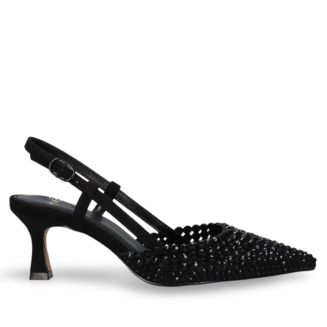 Slingback Alisa 410 dal design elegante e raffinato, impreziosite da luminosi dettagli che catturano la luce a ogni passo. Perfette per valorizzare qualsiasi outfit con un tocco femminile e sofisticato. Tomaia in materiale sintetico nero, soletta in pelle per un comfort ottimale, suola sintetica. Chiusura con fibbia e tacco di 7 cm.