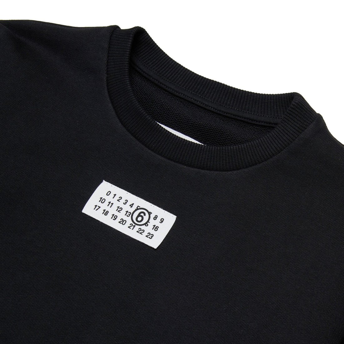 Felpa girocollo MM6 dal design essenziale e riconoscibile. Realizzata in 100% cotone nero, garantisce comfort e morbidezza per l’uso quotidiano. Il logo sul petto dona un accento distintivo, mentre l’iconica cucitura sul retro firma lo stile del brand. Maniche lunghe con polsini e fondo a costine per una vestibilità curata e attuale.*Articolo della collezione bambino, indossabile anche da donna.