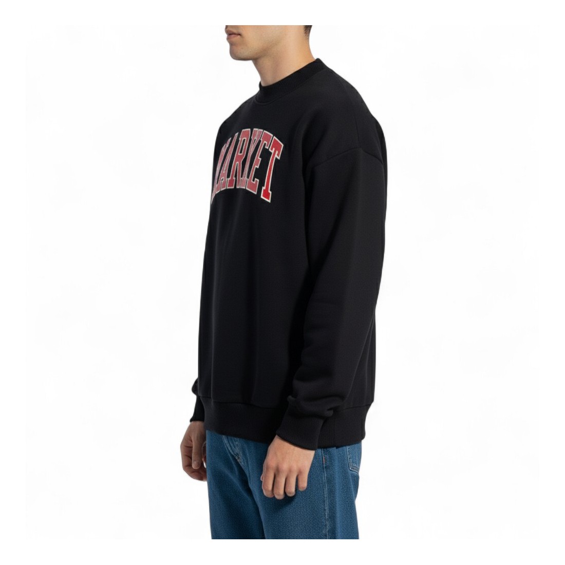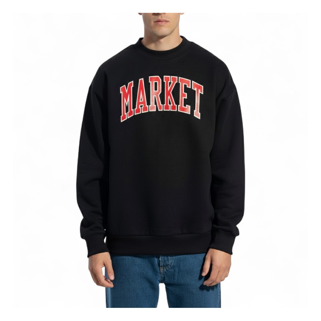 Felpa da uomo MARKET nera, girocollo classico e vestibilità regular. La scritta "MARKET" in grande spicca sul davanti, conferendo un tocco urbano e contemporaneo. Realizzata in morbido cotone, con polsini e orlo a costine, è perfetta per un look casual. Lavabile in lavatrice e stirabile a temperatura media.