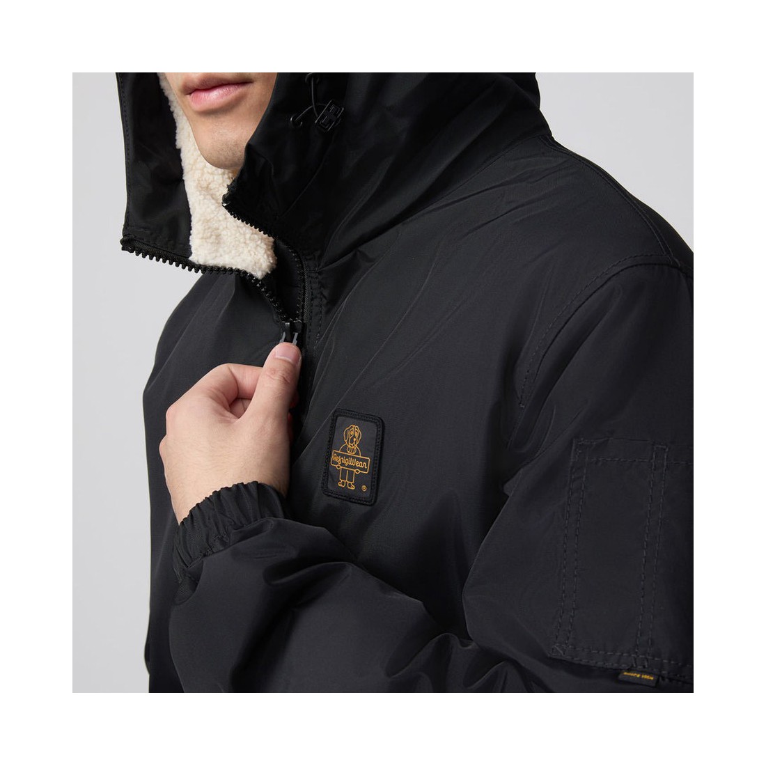 Giubbotto invernale da uomo con cappuccio, dal design pulito e senza tempo. Realizzato in resistente nylon Oxford antivento con finitura opaca e texture croccante. L’interno in caldo tessuto Teddy assicura comfort e protezione dal freddo. Vestibilità leggermente ampia, chiusura con zip e bottoni a pressione. Un capo pratico e versatile, ideale per l’inverno.