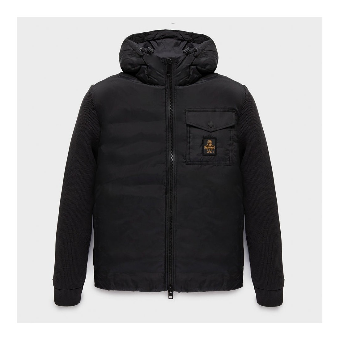 Piumino invernale ibrido dal look raffinato e moderno. Il corpo frontale e il cappuccio, in nylon opaco dalla mano morbida e vellutata, sono imbottiti in 100% piuma 90/10 certificata RDS con membrana Reclosed® che impedisce la fuoriuscita di piume e assicura durata. Retro e maniche in maglia tecnica di nylon super-tech offrono comfort e resistenza. Water Resistant, Wind Resistant e rifinito con l’iconico taschino e patch logo RefrigiWear®.