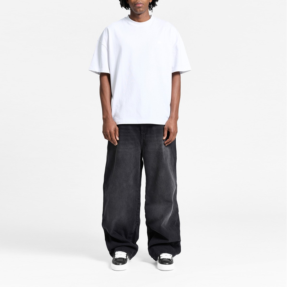 Realizzati in denim nero lavato di alta qualità, gli Essential Baggy Denim offrono un look unico grazie agli effetti bleach e alle impunture decorative sulle tasche posteriori. La vestibilità ampia garantisce comfort quotidiano, mentre la chiusura con zip YKK e il distintivo gancio metallico firmato Signe completano uno stile autentico e contemporaneo in 100% cotone.