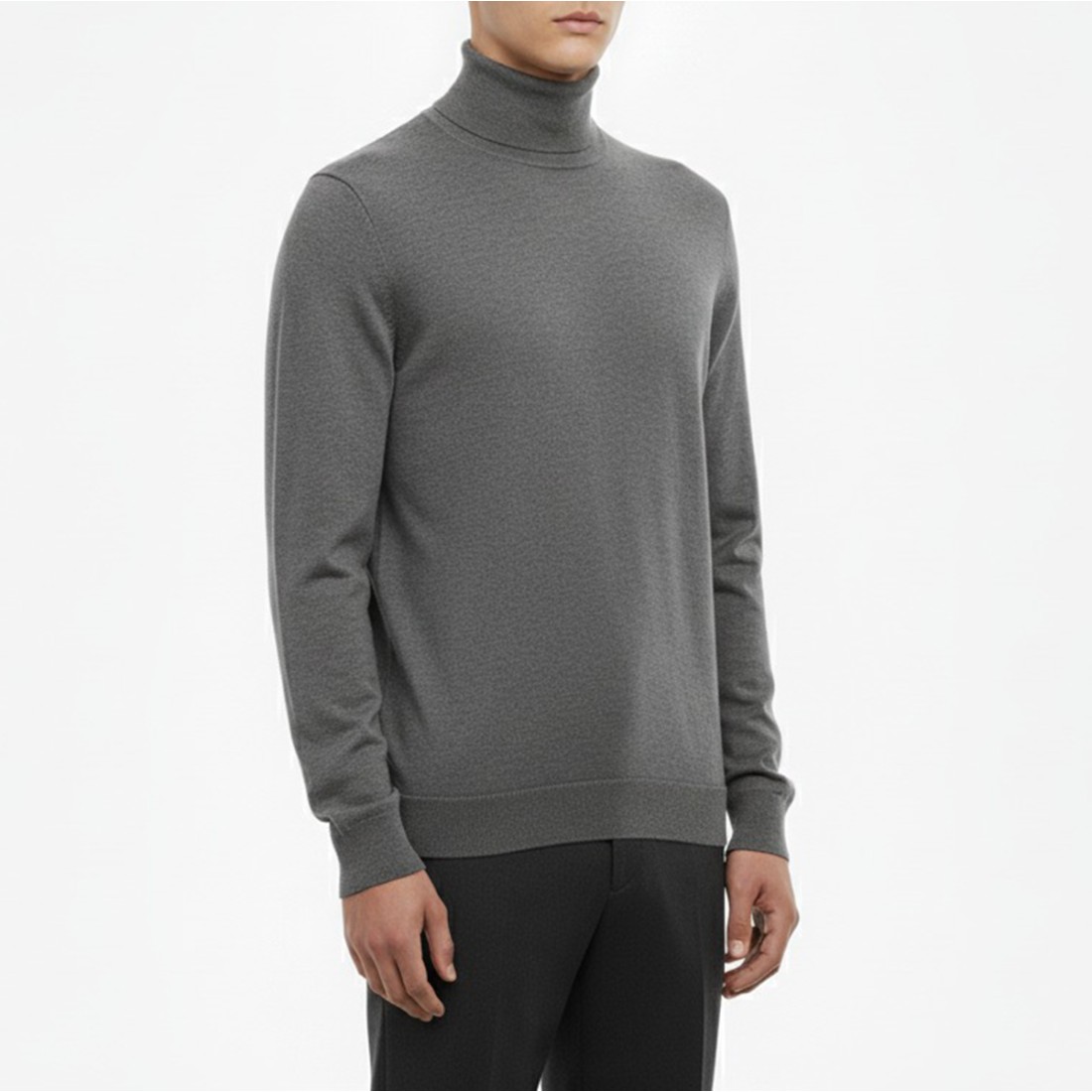 Dolcevita Bottega Cinque in misto lana grigia dal design elegante e confortevole. Realizzato con una combinazione di poliestere, nylon, acrilico e lana merinos, offre calore e morbidezza ideali per la stagione fredda. Gli orli elasticizzati garantiscono una vestibilità regolare e precisa, perfetta per uno stile curato e versatile adatto a ogni occasione.