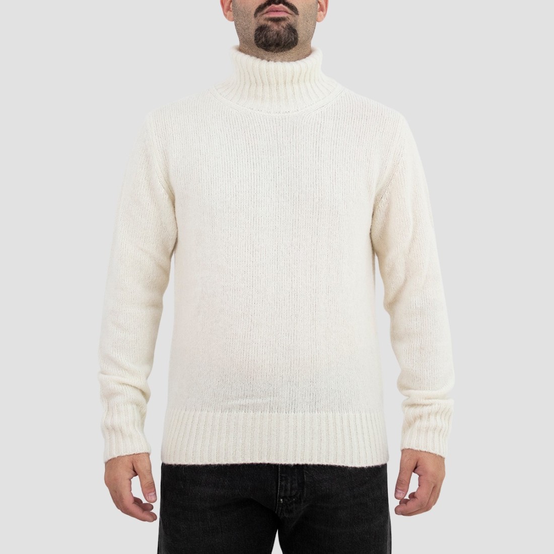 GRIFONI - Dolcevita in 49% alpaca, 30% poliammide e 21% lana color panna con lavorazione a maglia. Vestibilità regolare e lunghezza tradizionale.