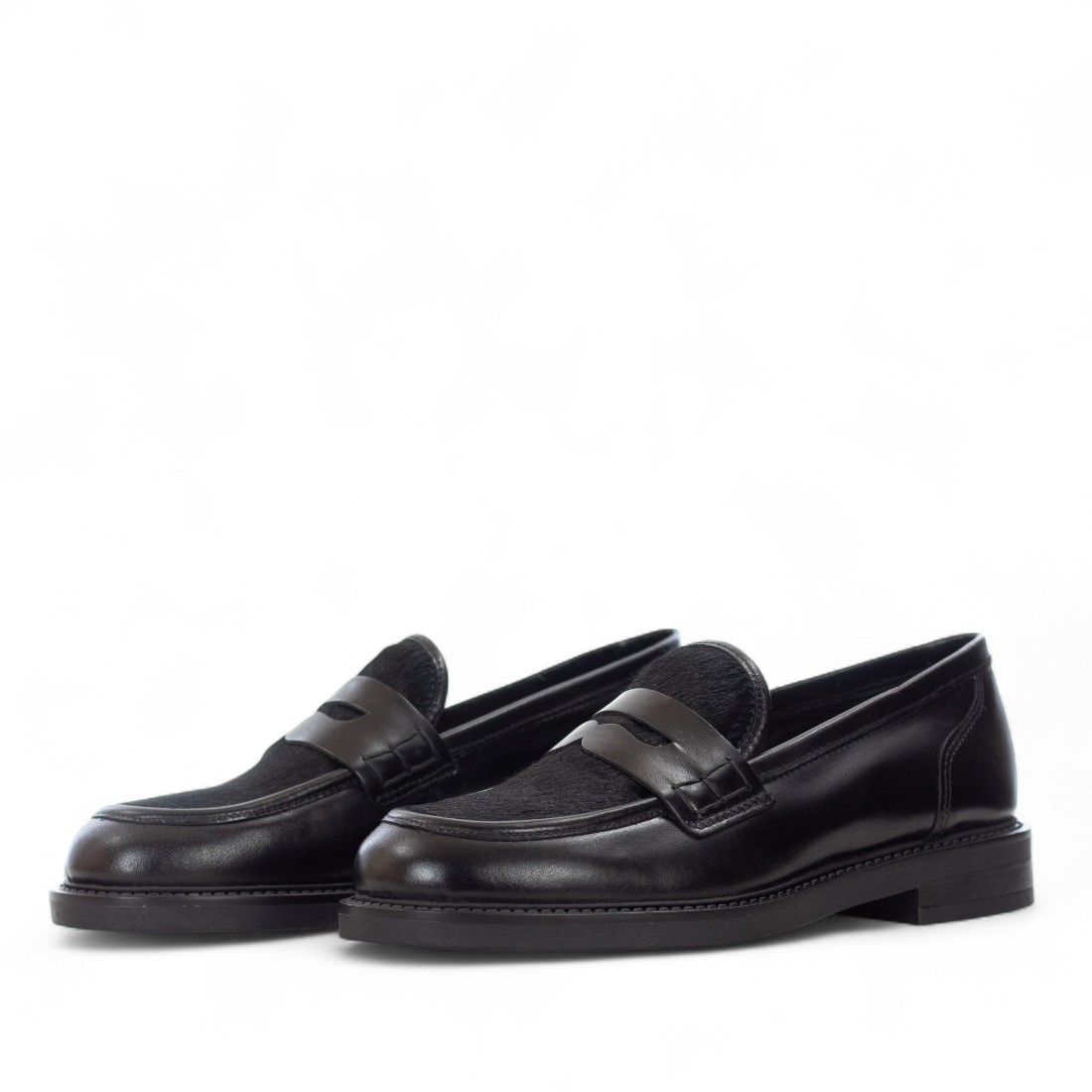Il mocassino CARMENS PADOVA in morbida pelle nera unisce eleganza e comfort. La fodera e la suola sono interamente in pelle, mentre il fondo in gomma assicura una camminata stabile e confortevole. Il dettaglio frontale in pony hair tono su tono aggiunge un tocco di stile raffinato. Ideale per un uso quotidiano, perfetto sia per il lavoro che per il tempo libero, garantendo qualità e gusto in ogni occasione.Il nostro servizio clienti è a tua disposizione dal Lunedì al Sabato dalle 10:00 alle 19:30.