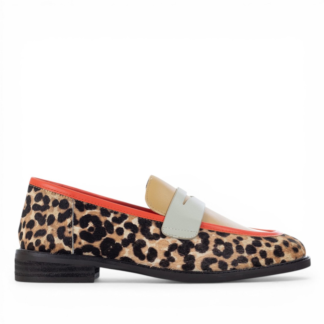 Mocassino THE GIVER in cavallino leopardato dal carattere deciso, arricchito da linguetta in pelle beige, bordo in pelle arancio e fascetta in pelle grigia. Il design combina dettagli ricercati e contrasti di colore per uno stile unico. Fondo in gomma con tacco da 20 mm, ideale per garantire comfort e praticità durante tutta la giornata.Il nostro servizio clienti è a tua disposizione dal Lunedì al Sabato dalle 10:00 alle 19:30.
