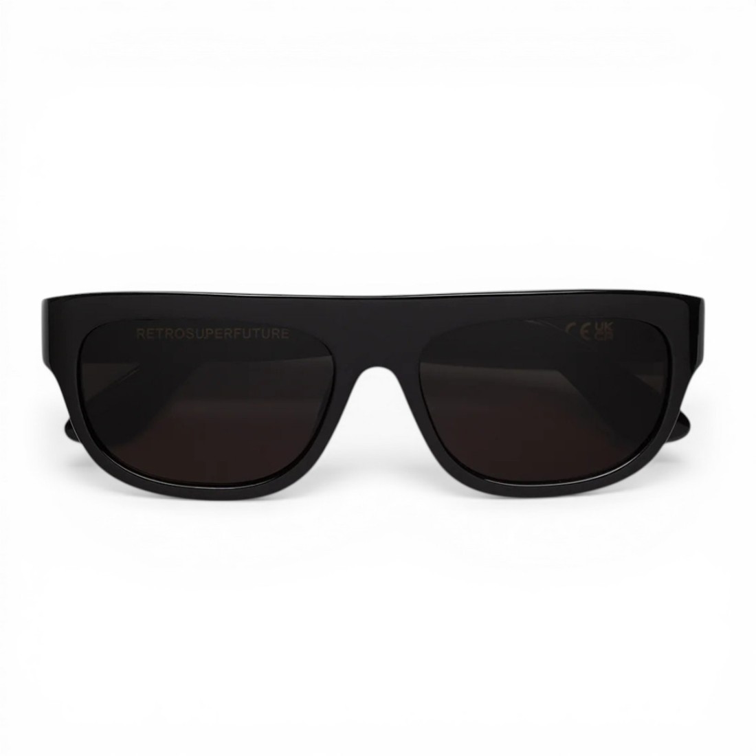 Occhiali da sole Serioso Black di Retrosuperfuture in acetato nero, caratterizzati da una montatura dal design deciso e contemporaneo. Le lenti in polimero nero assicurano protezione e comfort visivo, donando al tempo stesso un tocco distintivo al look. Completi di astuccio semirigido in pelle gommata nera, perfetto per custodirli con stile e praticità ogni giorno.